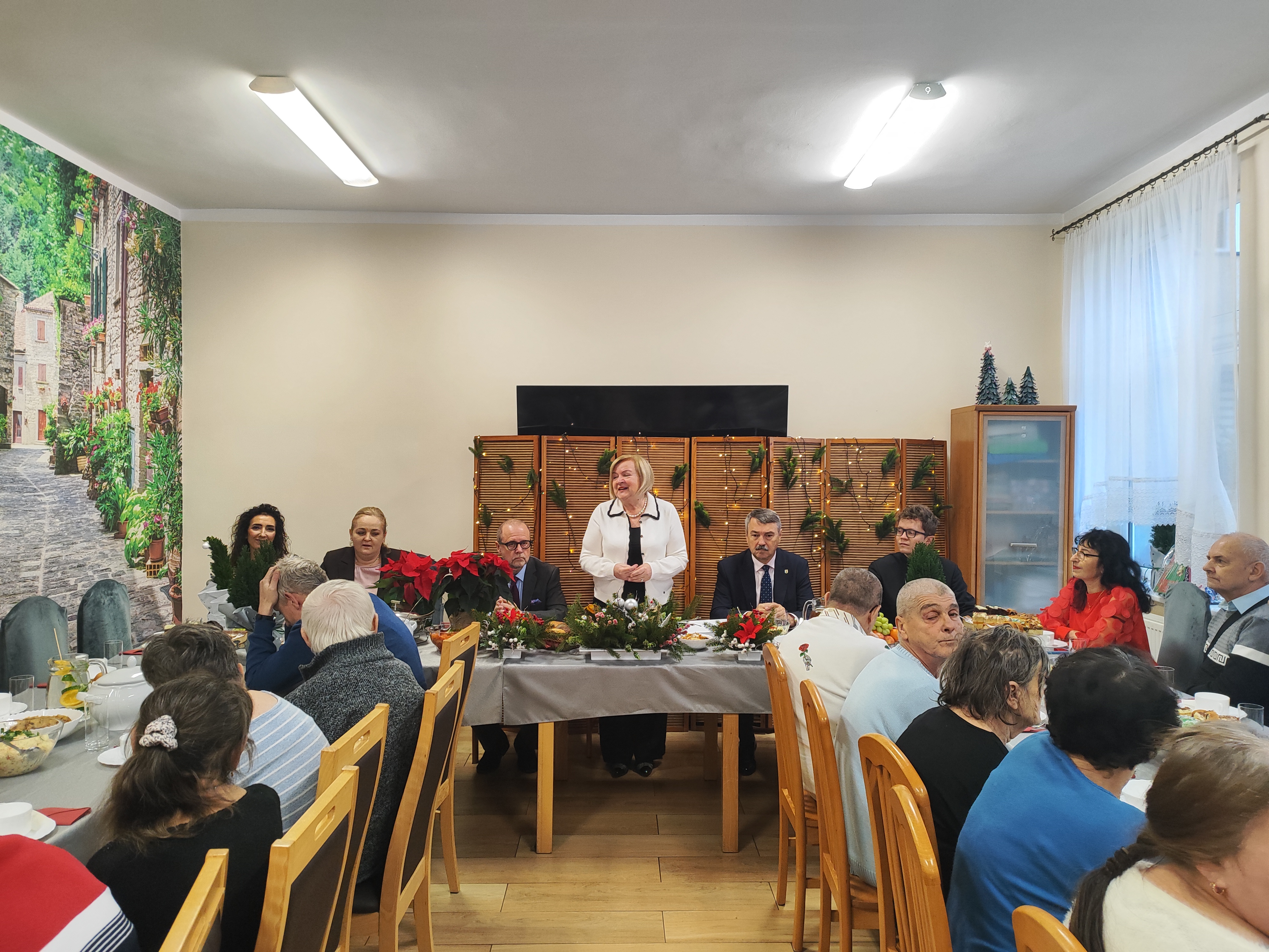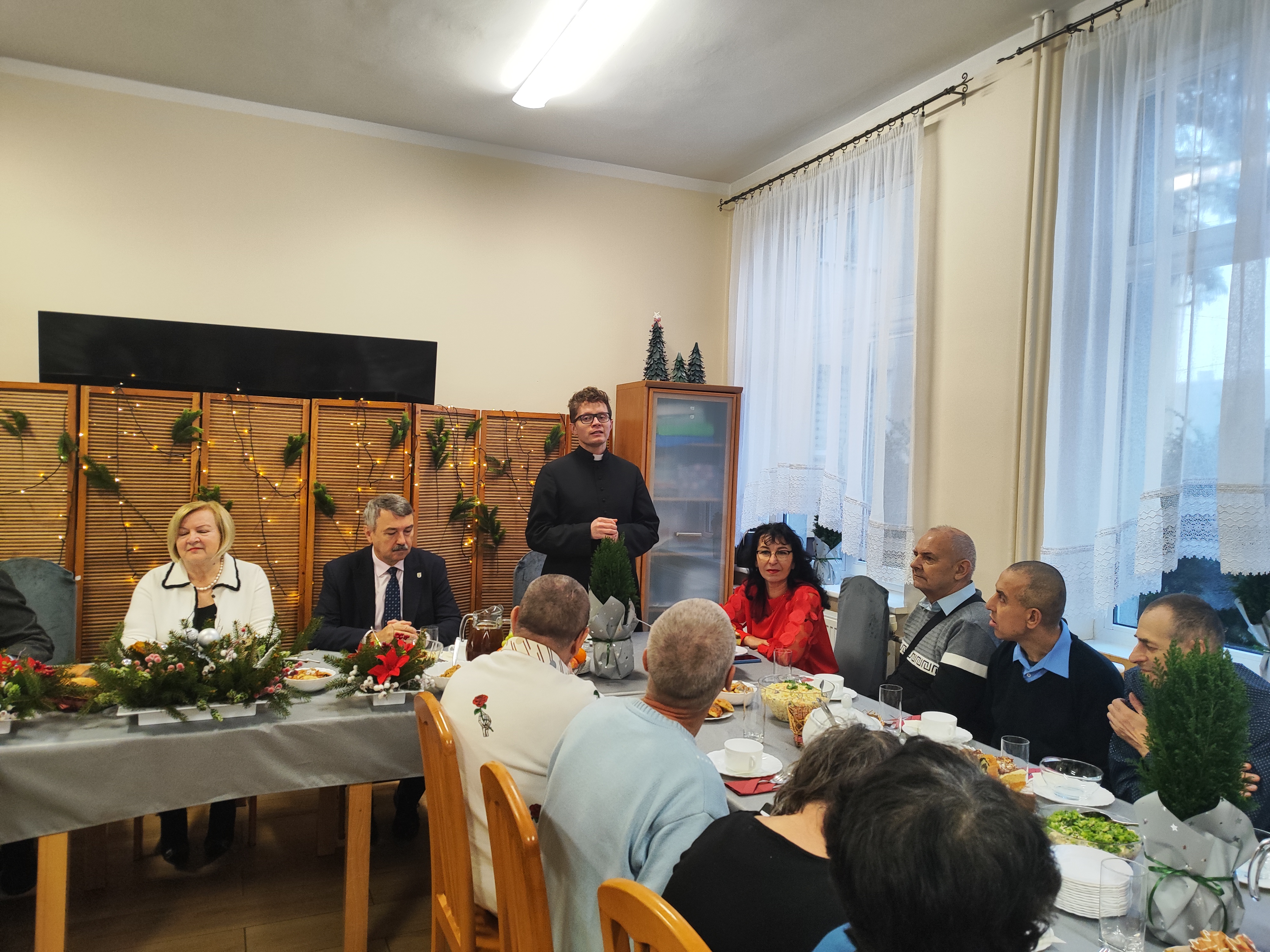 Po powitaniu wszystkich przez kierownik domu panią Małgorzatę Subocz, uczestnicy, ich rodziny oraz zaproszeni goście podzielili się opłatkiem, składając sobie serdeczne życzenia z okazji nadchodzących Świąt Bożego Narodzenia. Następnie wysłuchano krótkich wystąpień, przywołujących świąteczne refleksje i wprowadzających wszystkich w wyjątkowy nastrój tego dnia. Na stołach pojawiły się tradycyjne potrawy, które dodatkowo podkreśliły charakter świątecznego spotkania.