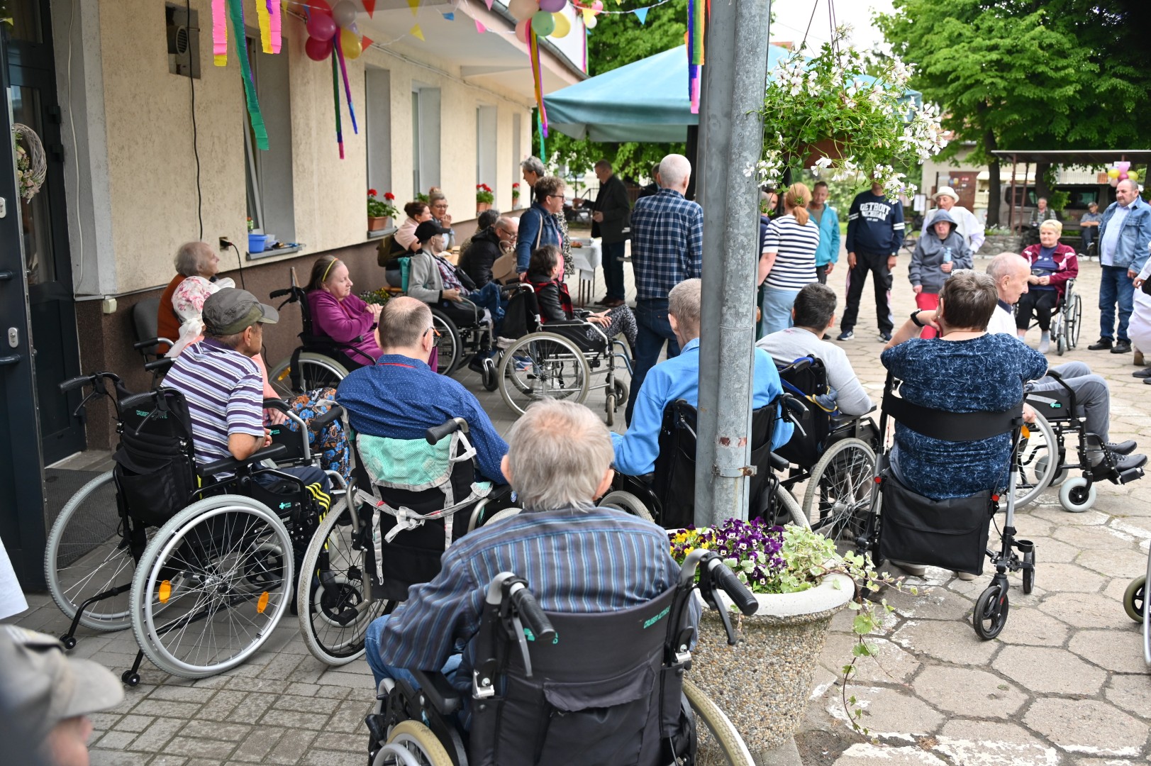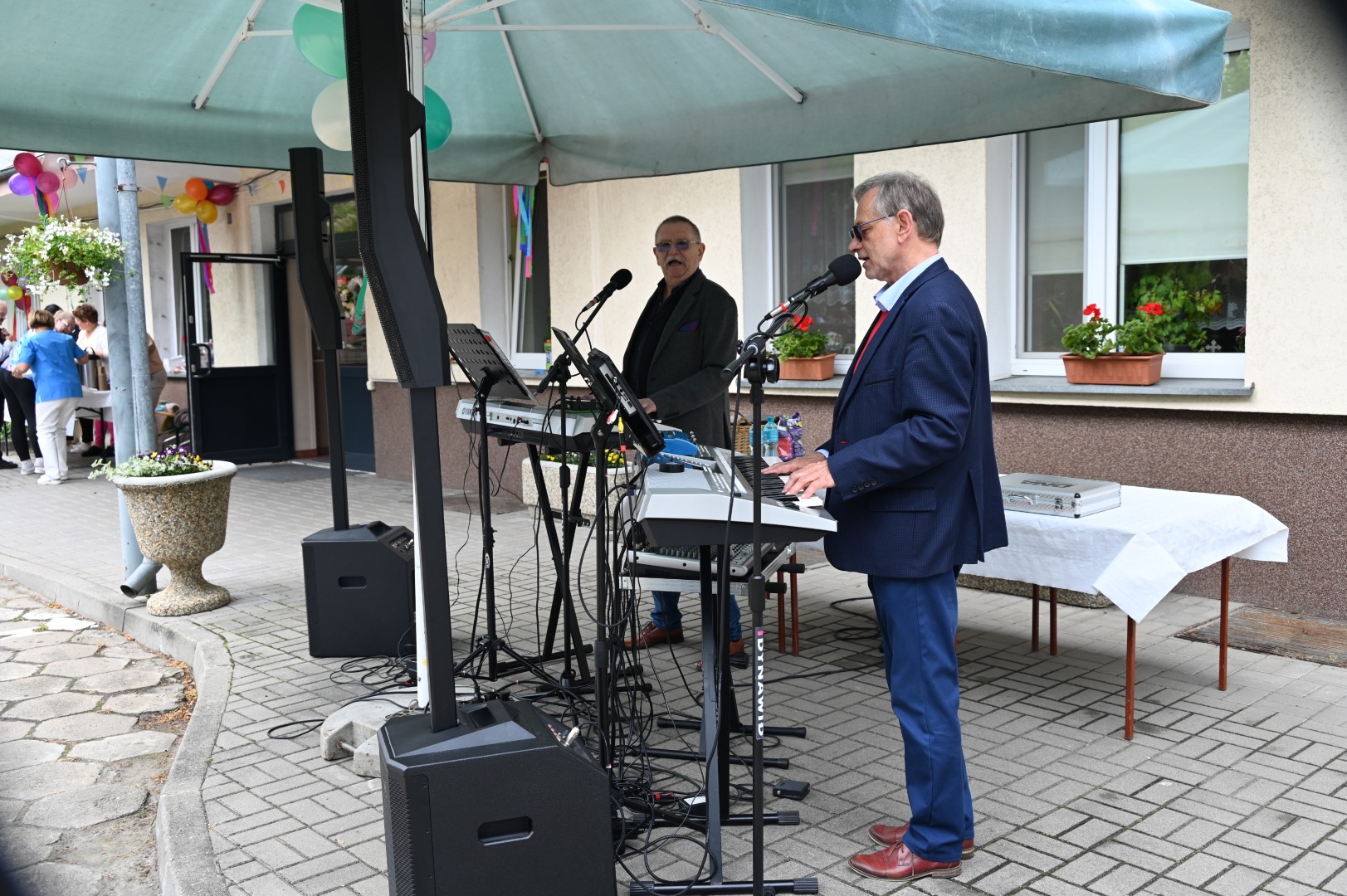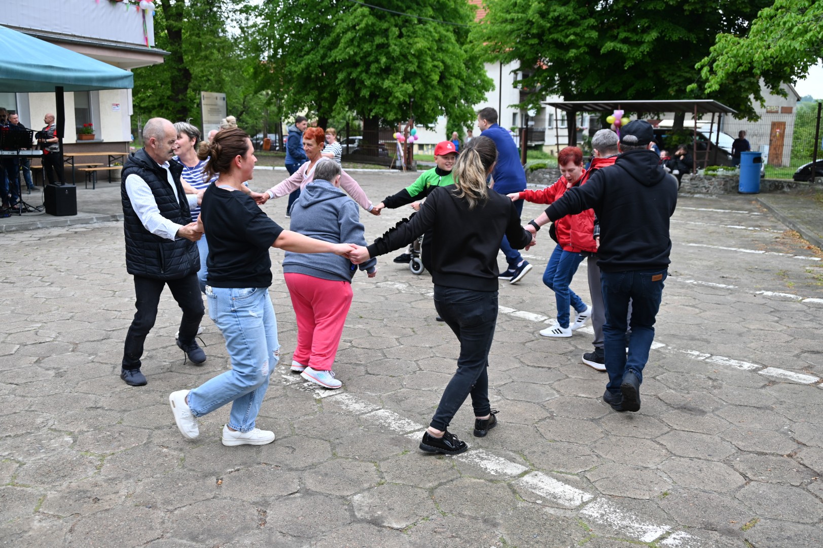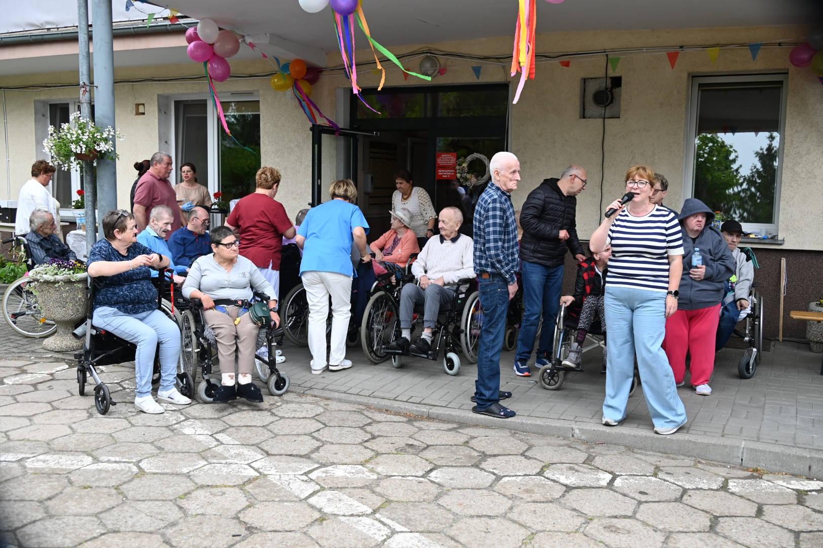 Już dawno temu, dokładnie 24 maja 2024 roku, zapraszaliśmy na kolejny, dziewiąty w kolejności Dzień Otwarty naszej placówki. Informacja o ubiegłorocznej uroczystości rozpoczynała się od słów: „W majowy piękny dzień 22 maja br. pracownicy i mieszkańcy Domu Pomocy Społecznej w Tolkmicku zorganizowali po raz ósmy Dzień Otwarty, promujący ofertę i działalność naszej placówki”. Tym razem, 26 maja 2025 roku w poniedziałek, dzień był również majowy, choć pogodowo raczej kapryśny i nieprzewidywalny, niebo od rana zasnuło się chmurami, kropił deszcz, a w kulminacyjnym momencie, gdy zabawa rozkręciła się w najlepsze, po prostu lunęło jak z cebra. Nam i naszym gościom wcale to nie przeszkodziło, schroniwszy się pod daszkami przeczekaliśmy opad, siłą woli rozgarnęliśmy obłoki i wróciliśmy do rozrywek, zabaw i tańców. A wspaniała orkiestra, występująca pod szyldem „Bolek i Lolek”, wymiatała z werwą cały czas, zupełnie jak na Titanicu.