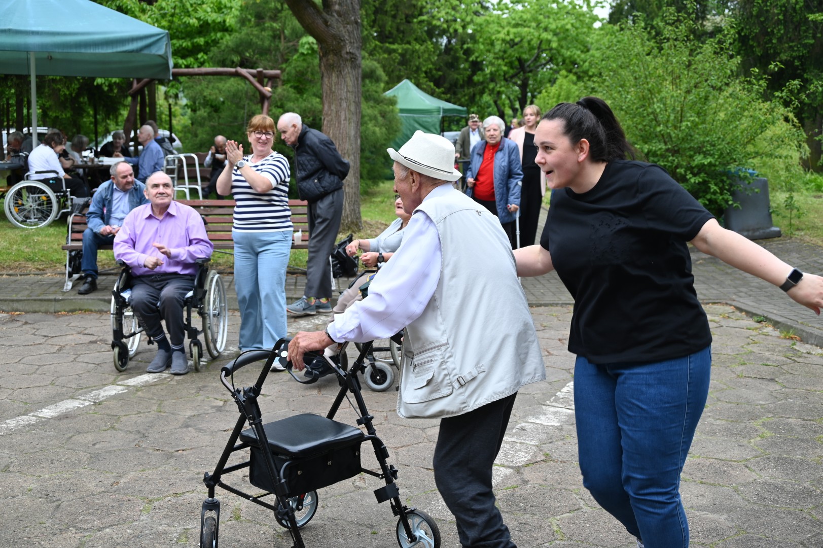 Wszyscy bawili się doskonale. Dzięki sponsorom nie brakowało nam strawy dla ciała, były zatem typowe przysmaki dla tego typu wydarzeń: chleb ze smalcem i kiszonym ogórkiem, bigos, grochówka, grillowane kiełbaski i ziemniaczana kiszka, wszelkiej maści ciasta własnego wypieku. Strawą dla ducha okazały się konkursy, gry i zabawy, występy wokalne, a nade wszystko taneczne popisy wykonywane przy akompaniamencie niestrudzonych i utalentowanych muzyków. Tańczyli sprawni i ci, poruszający się na wózkach, młodzi, średni wiekiem i seniorzy, zdrowi i nieco schorowani; wśród kółek, wygibasów i kontredansów zatarły się wszelkie różnice, w odstawkę poszły troski i problemy, chłonęliśmy życie pełną piersią, królowały radość, spontaniczność i beztroska. Właśnie po to organizowane są takie wydarzenia, szkoda, że tak rzadko.