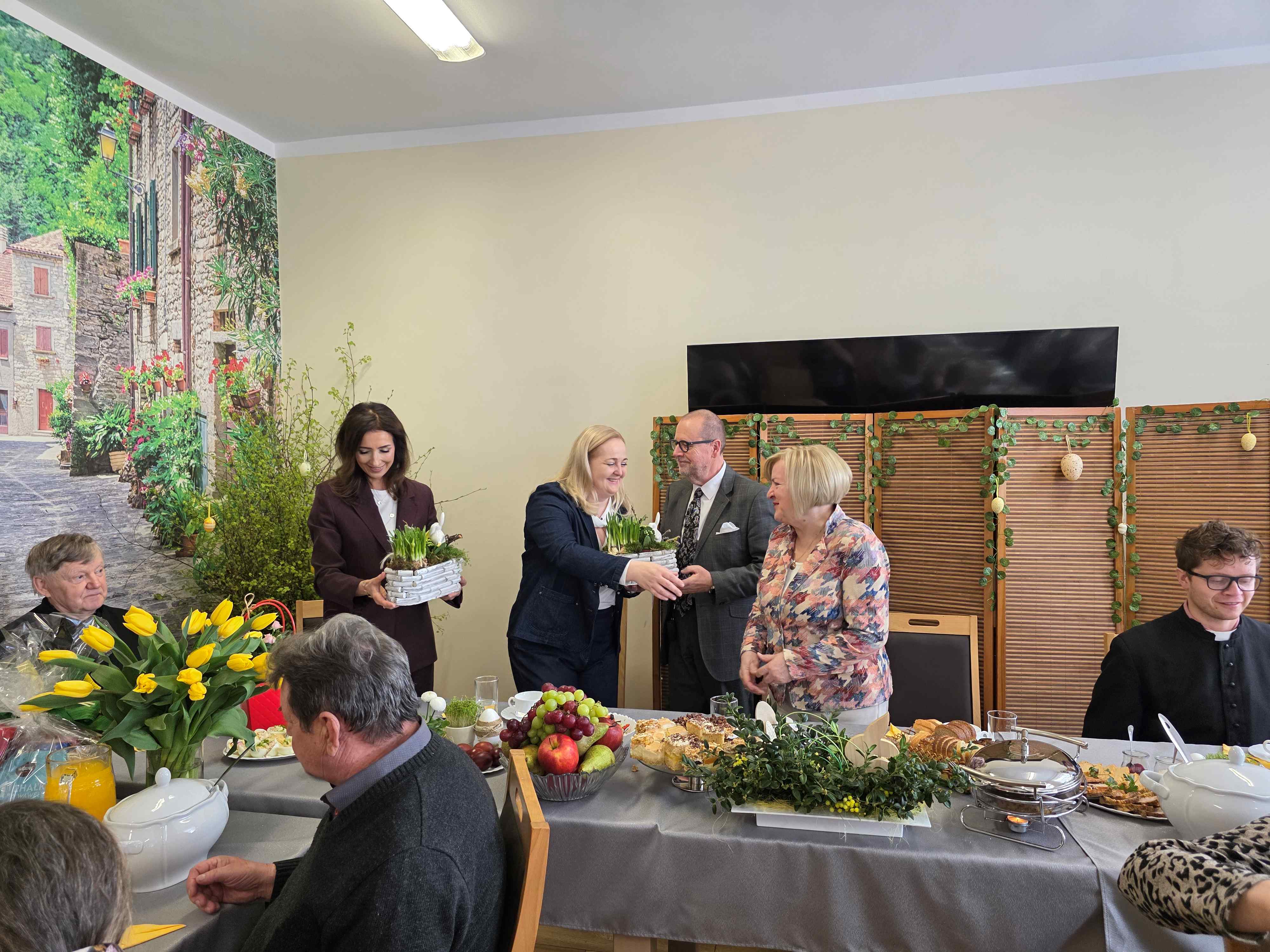 Spotkanie miało charakter uroczysty i jednocześnie bardzo serdeczny. Było okazją do wspólnego przeżywania czasu Wielkanocy, kultywowania tradycji oraz budowania relacji opartych na życzliwości i wzajemnym wsparciu. W trakcie spotkania uczestnicy oraz zaproszeni goście mieli możliwość wspólnego spędzania czasu przy świątecznym poczęstunku, co sprzyjało rozmowom, integracji oraz wzmacnianiu więzi społecznych. Tego rodzaju wydarzenia mają szczególne znaczenie dla uczestników ŚDS - kształtują poczucie przynależności, akceptacji oraz pozytywne relacje z otoczeniem.