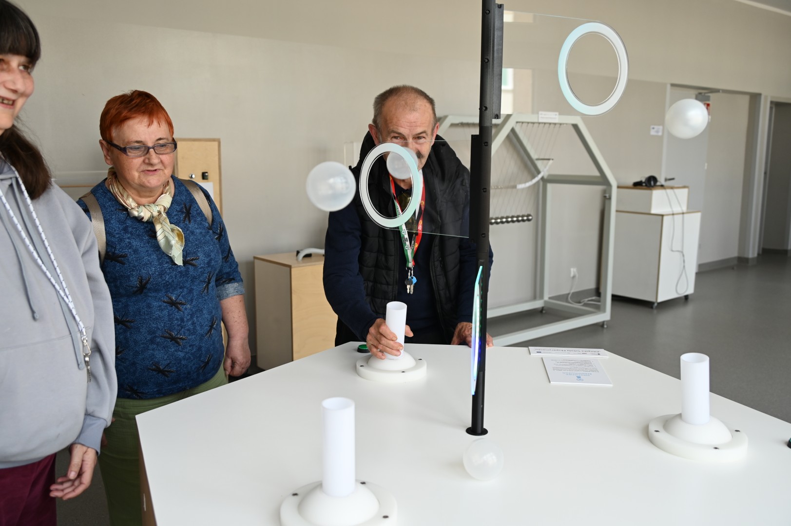 Uśmiechnięci i natchnieni wiarą we własne siły, wyposażeni w odczarowane moce sprawcze, poszliśmy na koniec pobawić się różnymi naukowymi eksponatami w Eksprymantarium. Czego tam nie ma, znowu zachwycające, przemawiające do wyobraźni i zdumiewające utensylia, ukazujące świat w odsłonach odległych od potocznego doświadczenia. Bawiliśmy się kulkami na dmuchawie Bernoulliego, wytwarzaliśmy prąd jadąc na rowerze, badaliśmy energię w kołysce Newtona i czas naszej reakcji na impulsy świetle, graliśmy na laserowej harfie. Nie wierzycie ?, sami się przekonajcie.