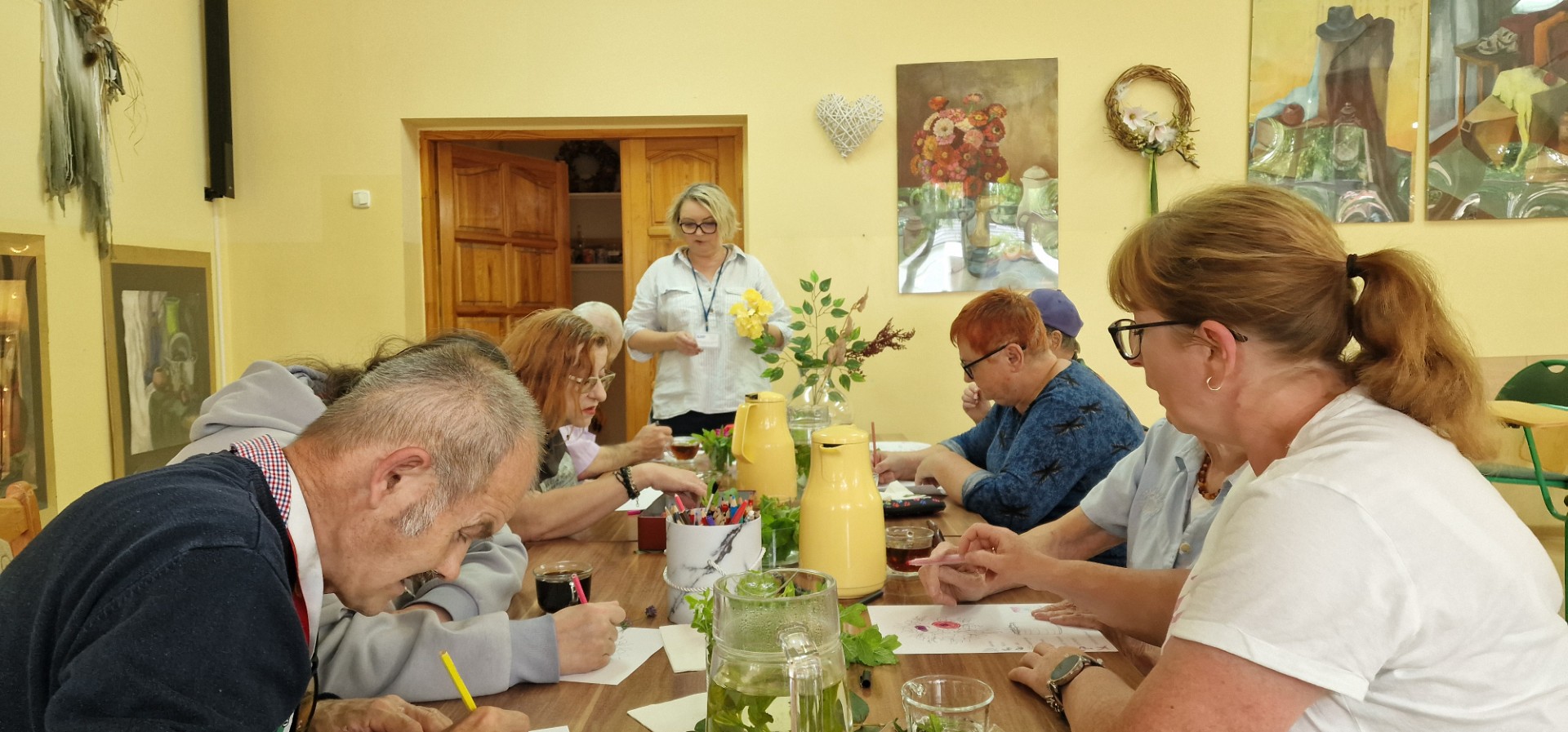 Mieszkańcy Domu Pomocy Społecznej w Tolkmicku w dniu 17 czerwca 2025 roku po raz drugi w tym roku uczestniczyli w zajęciach florystycznych prowadzonych pod kierunkiem Pani Anny Stoltmann - Stefaniak; oto nasza relacja z tego wydarzenia: