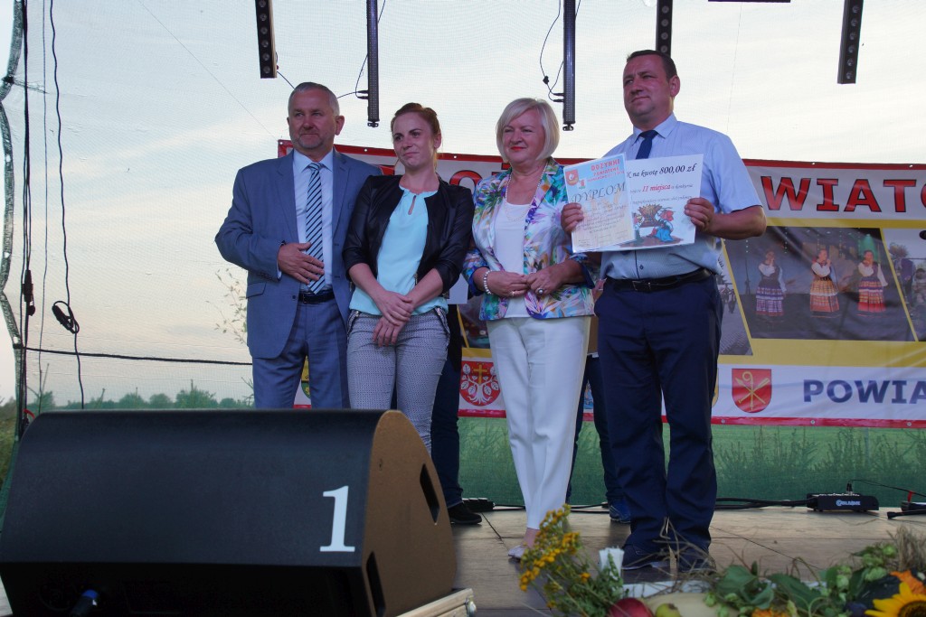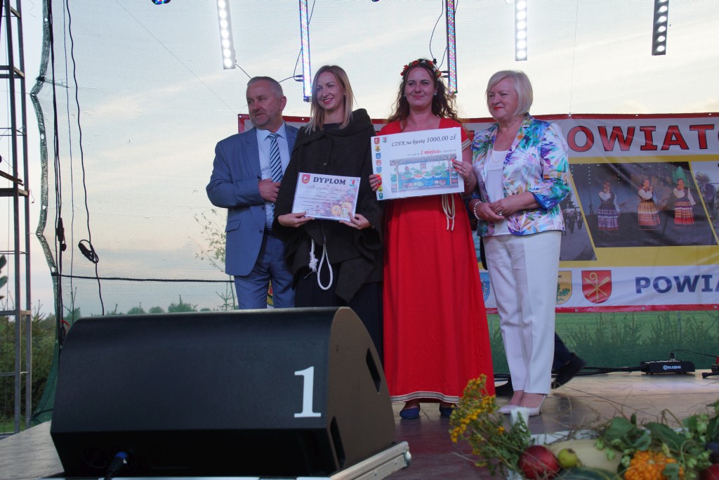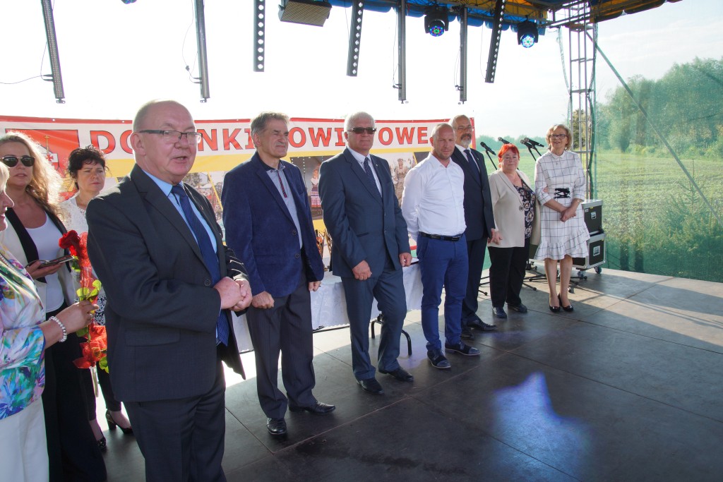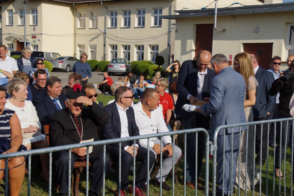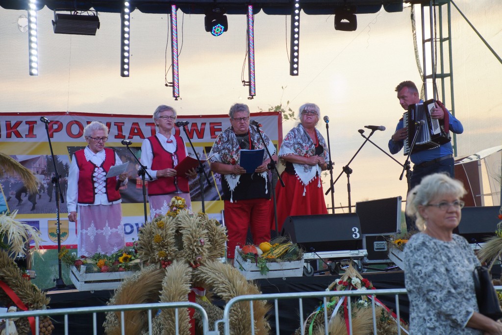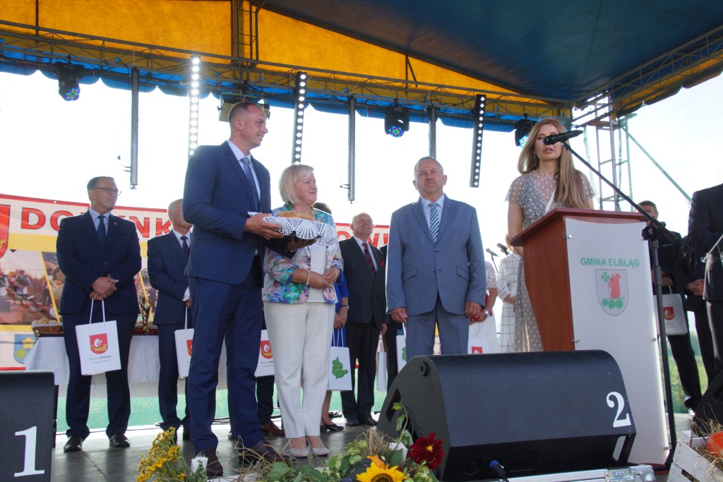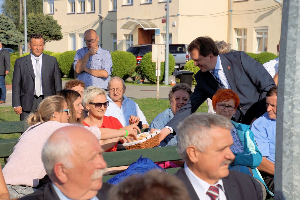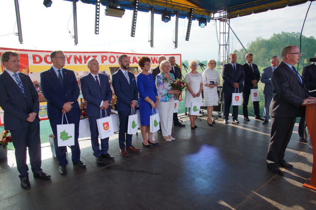Starostami tegorocznych dożynek byli państwo Sylwia i Radosław Murawiec. Przekazali oni tradycyjny bochen chleba na ręce starosty Macieja Romanowskiego i wójta Genowefy Kwoczek.