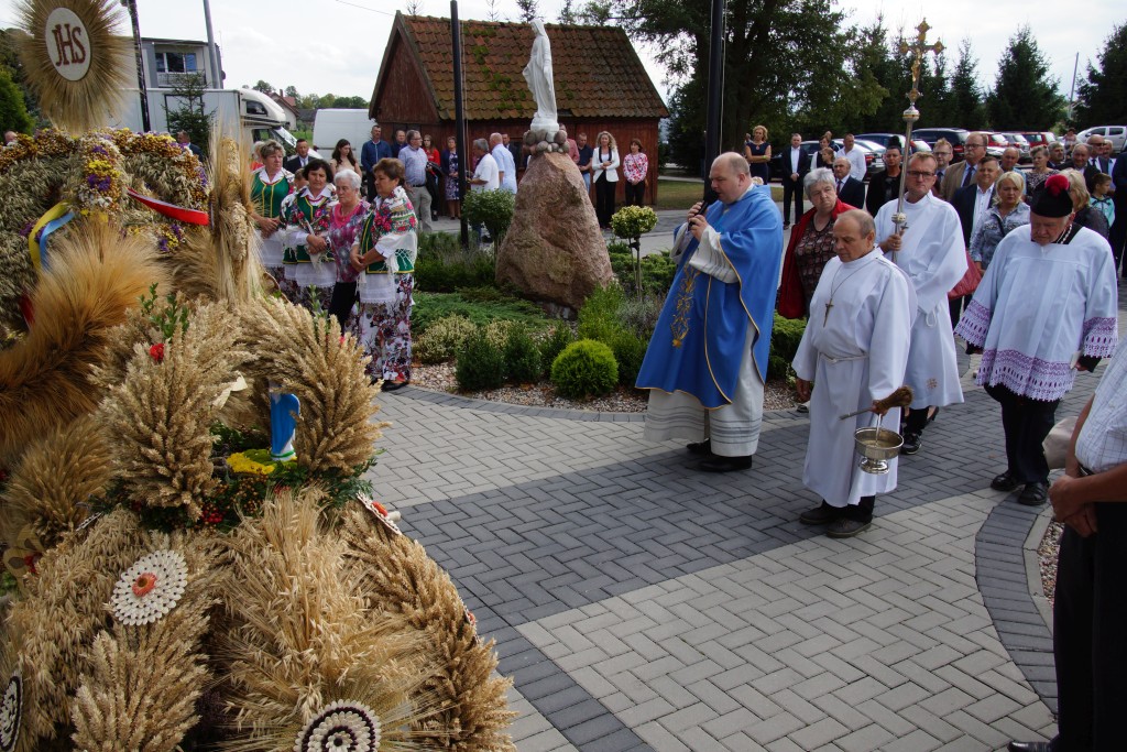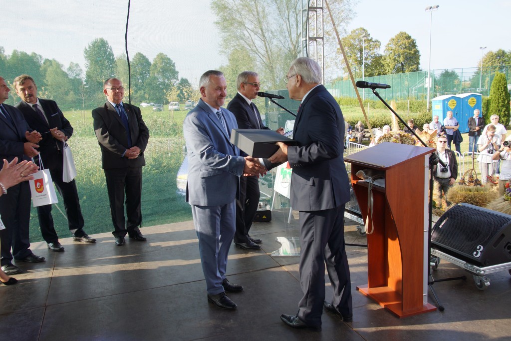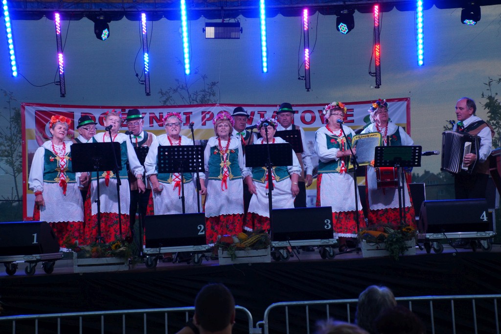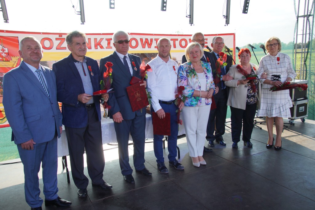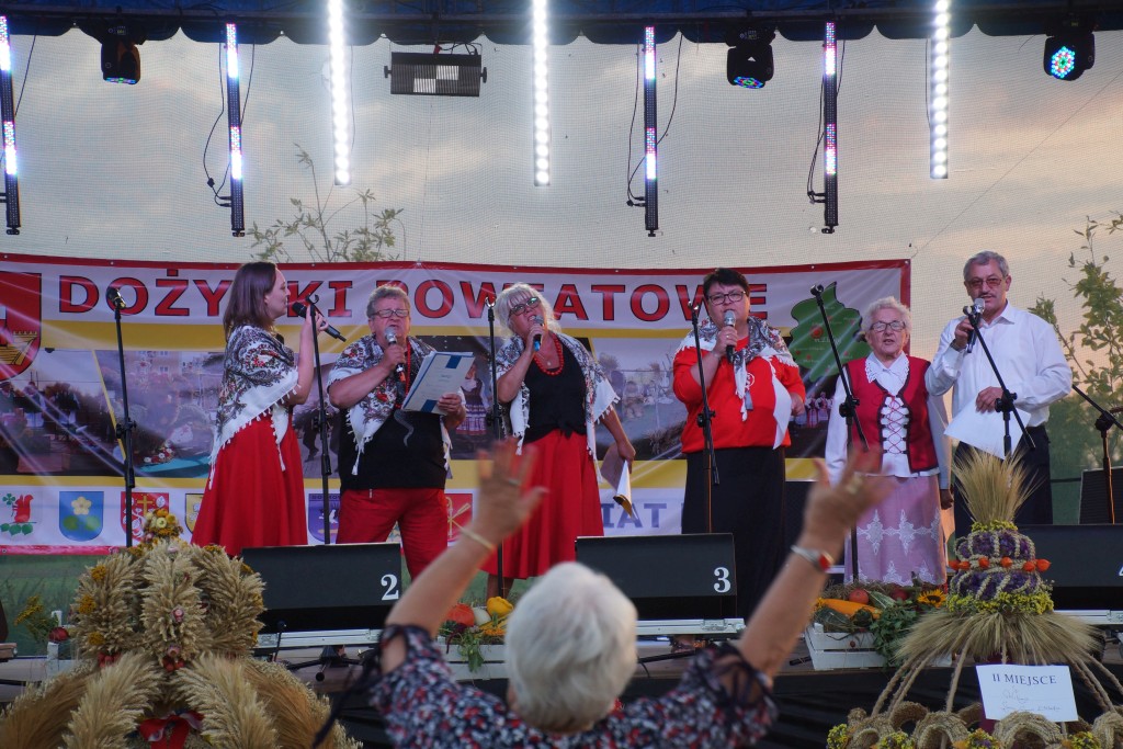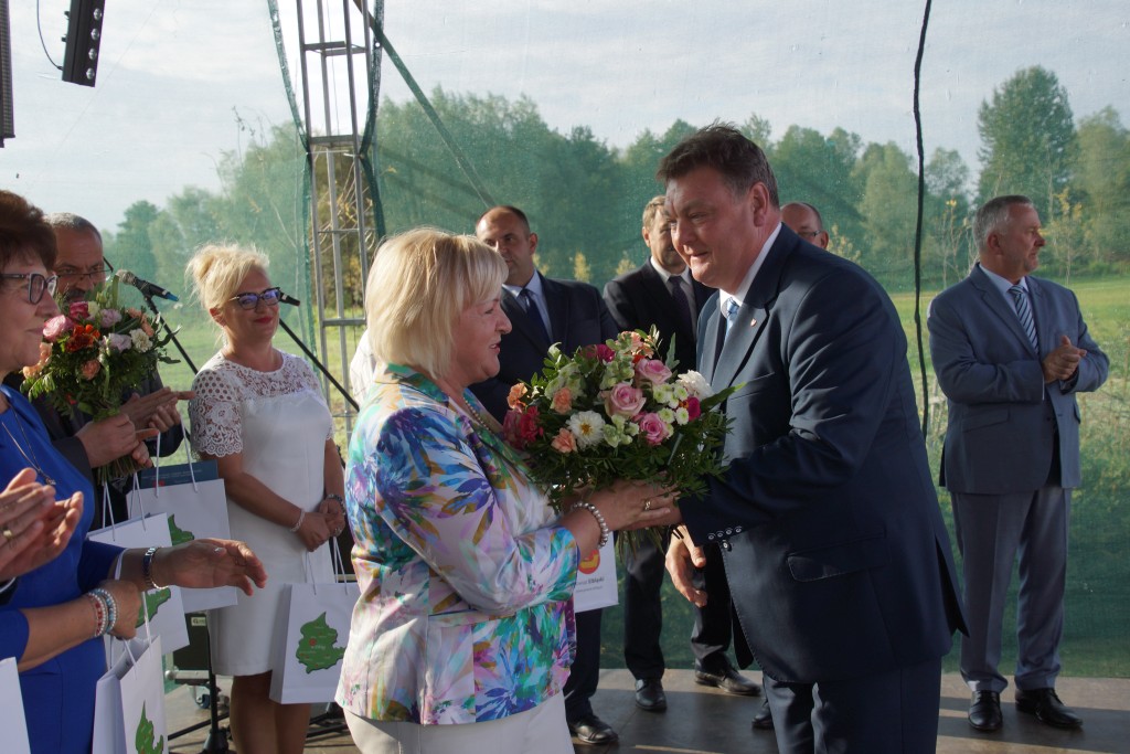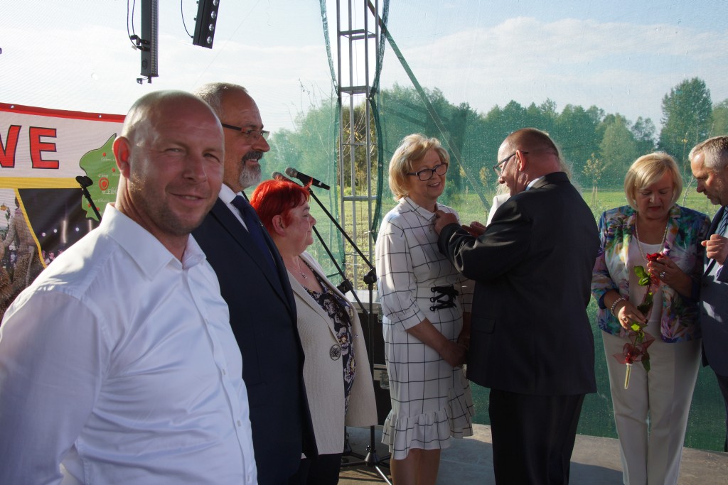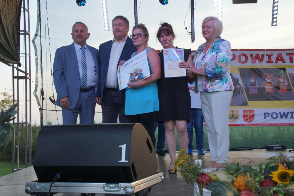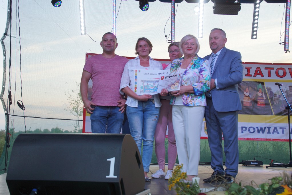 Starostami tegorocznych dożynek byli państwo Sylwia i Radosław Murawiec. Przekazali oni tradycyjny bochen chleba na ręce starosty Macieja Romanowskiego i wójta Genowefy Kwoczek.