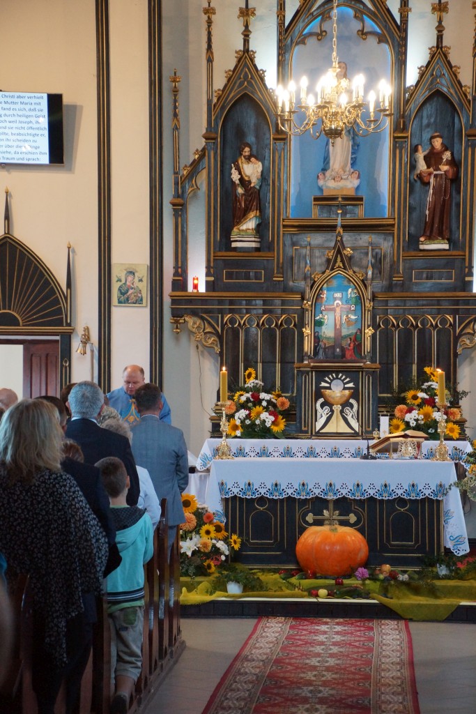 Tradycyjnie uroczystości dożynkowe zapoczątkowała Msza Święta w intencji rolników odprawiona przez ks. Pawła Guminiaka, proboszcza parafii w Cieplicach.