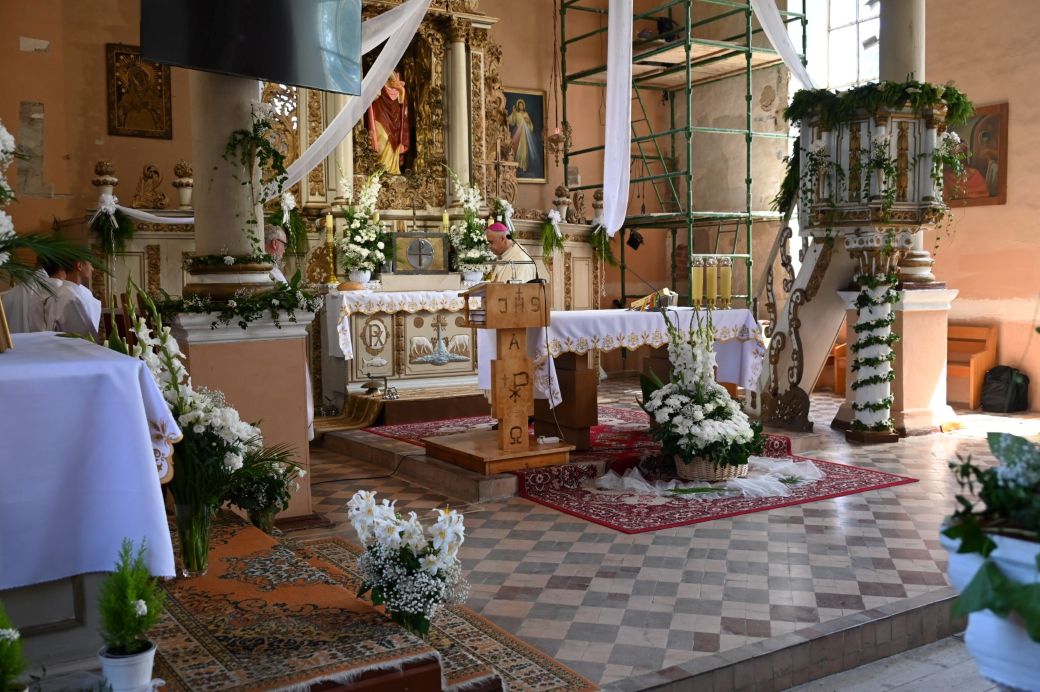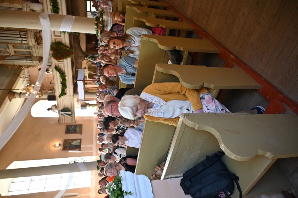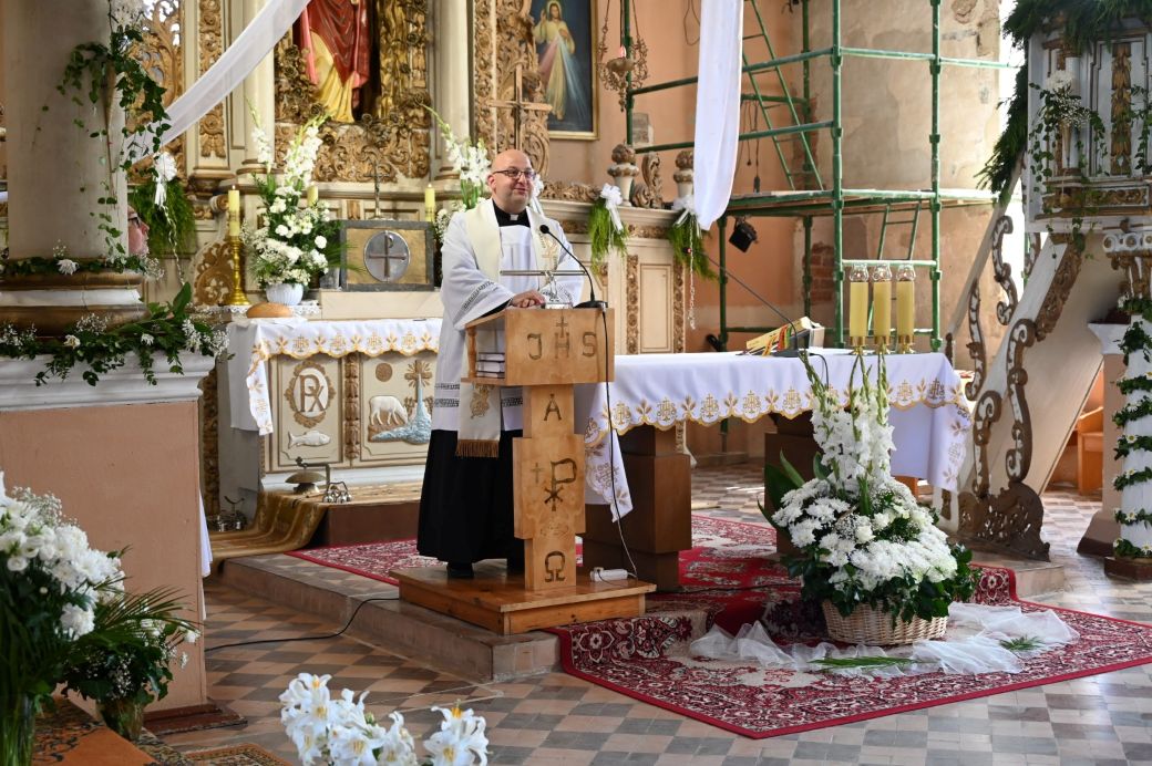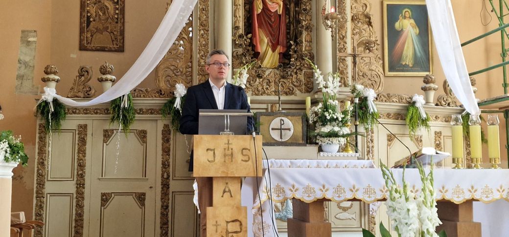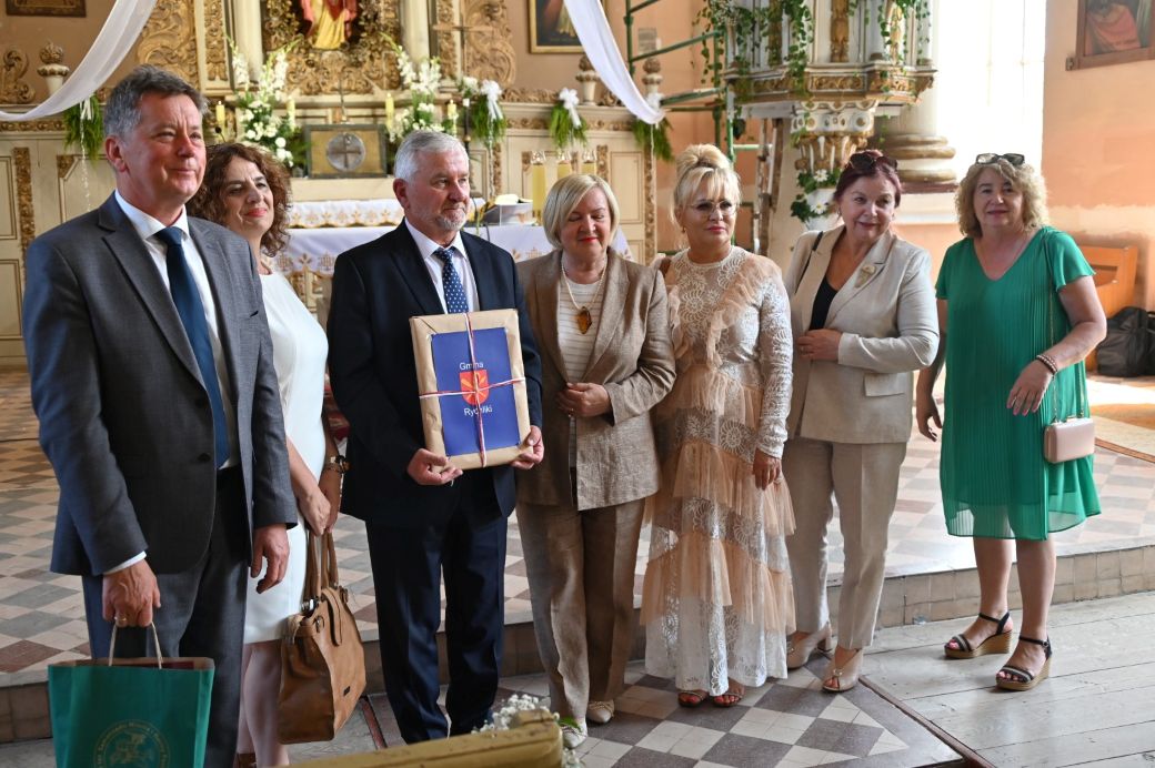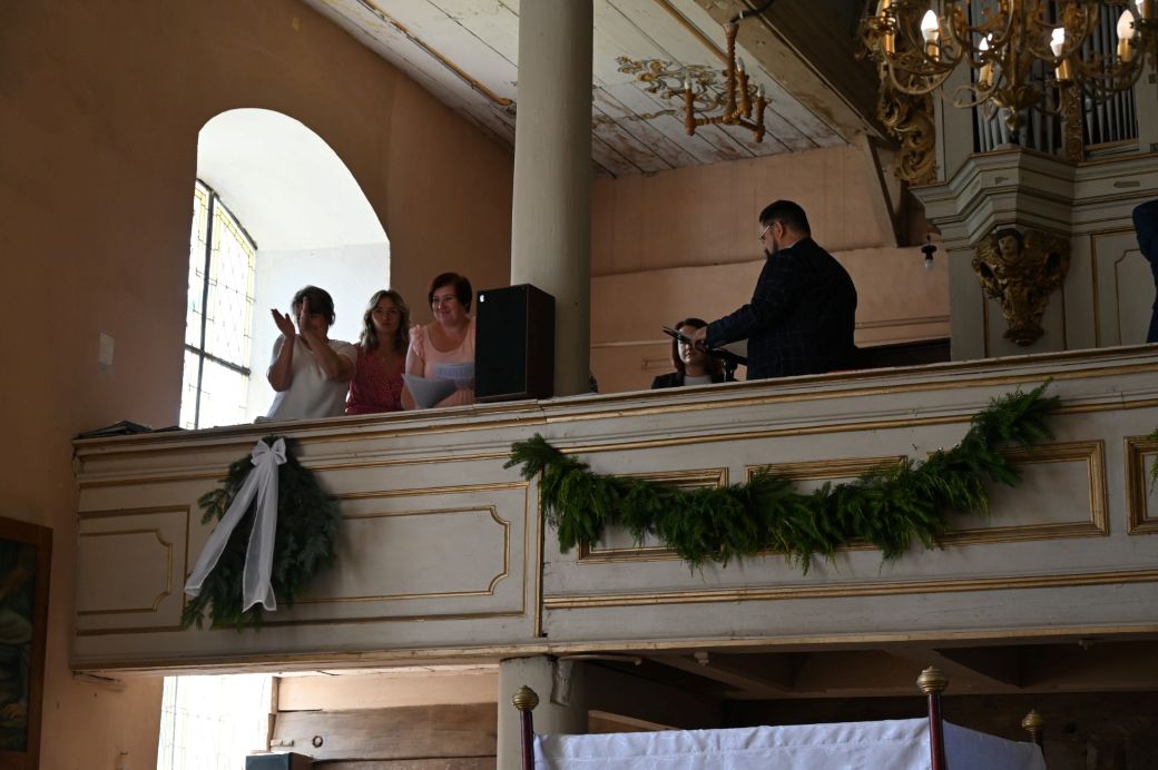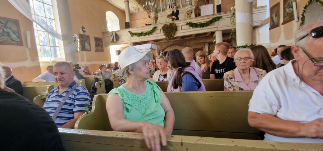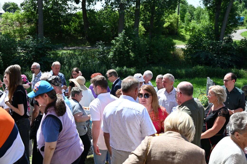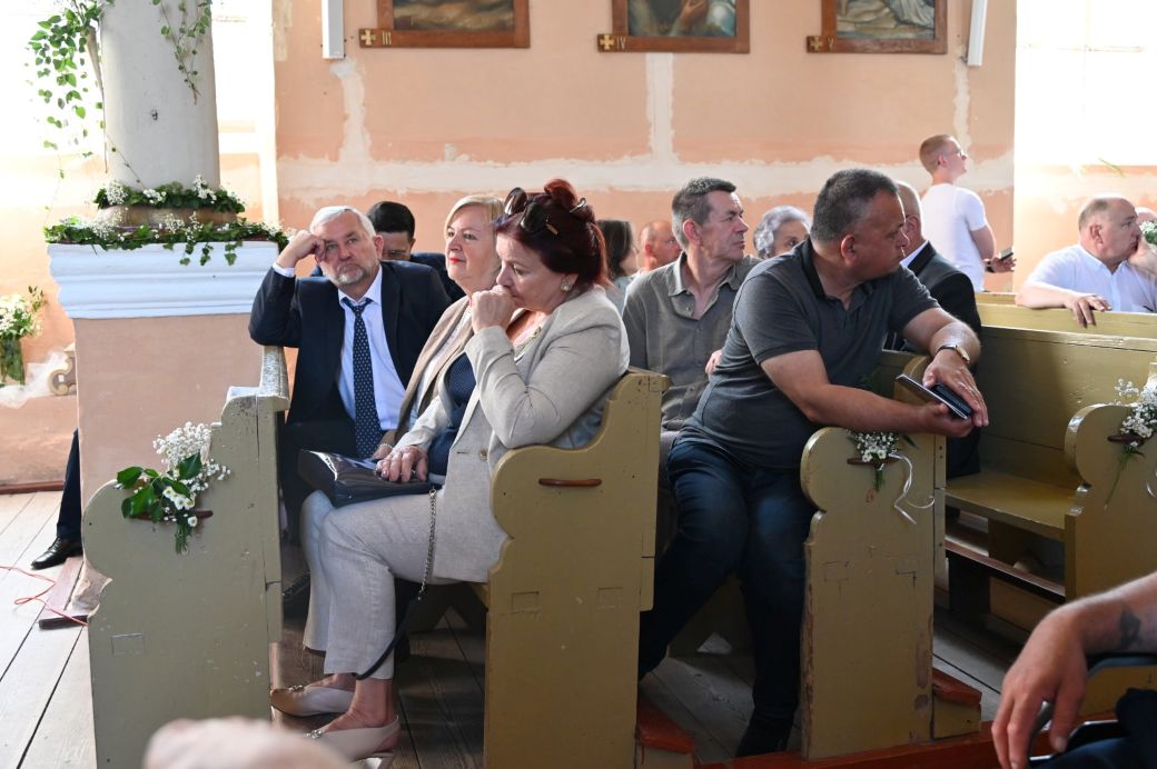Potem przemawiali Starosta Elbląski – Pan Maciej Romanowski oraz Wójt Gminy Rychliki – Pan Zbigniew Lichuszewski, którzy objęli parafialne uroczystości swoim honorowym patronatem. Pokrzepieni dobrymi słowami i zapewnieniami o zamiarach przywrócenia kościoła do stanu dawnej świetności, udaliśmy się na przerwę kawową, a wtedy przed dostojnym budynkiem zrobiło się jeszcze bardziej tłoczno i gwarno, czuliśmy się jak pszczoły w ulu zwabione słodkimi wypiekami przygotowanymi przez panie z rady parafialnej.