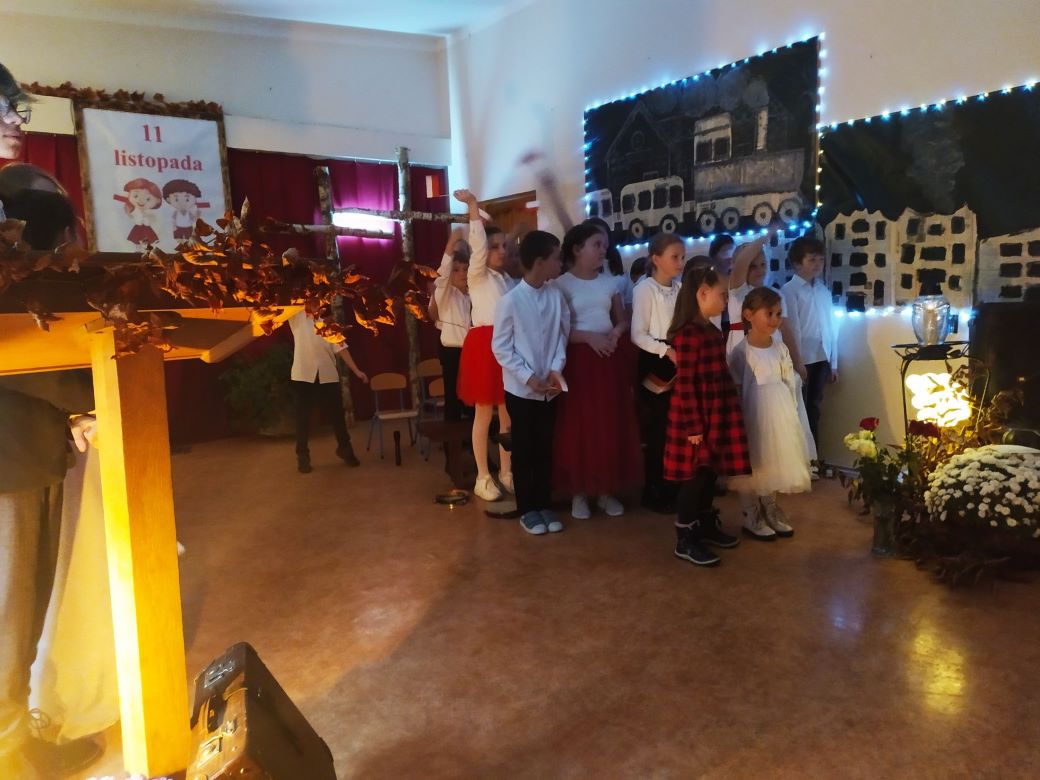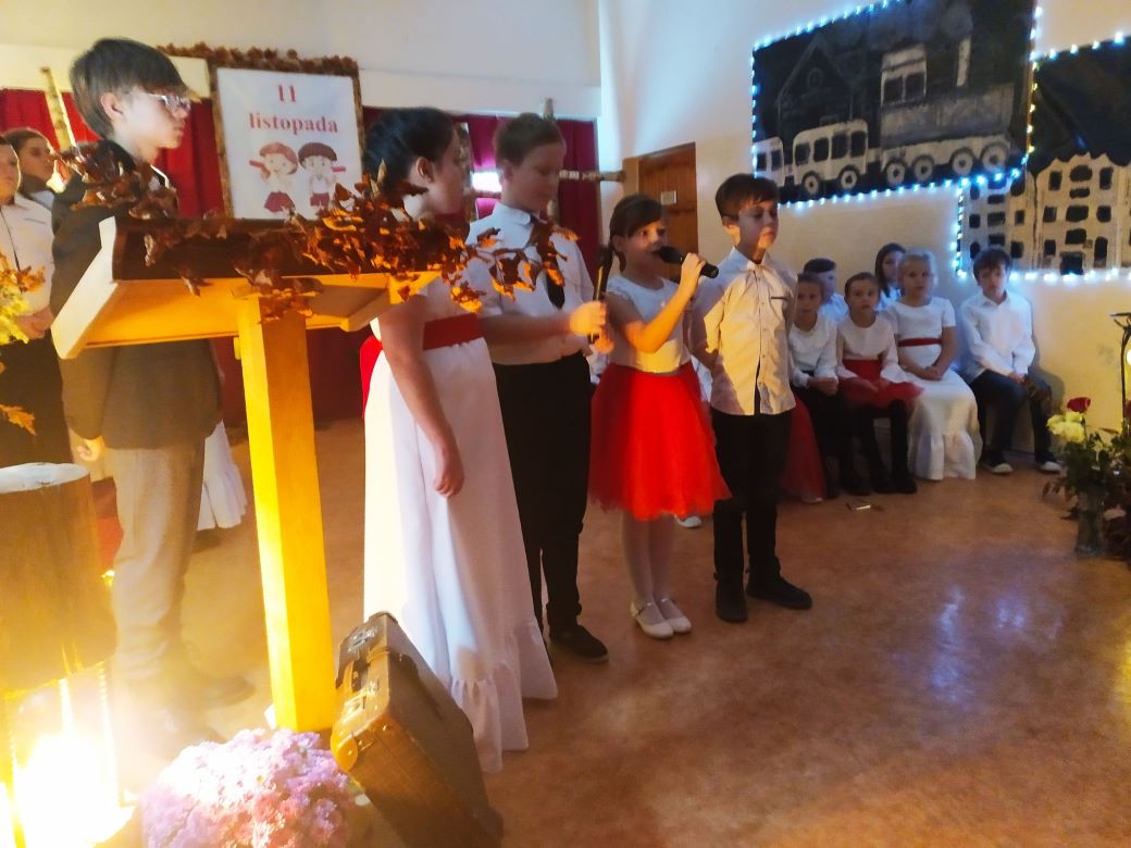 Najpierw odbyła się część artystyczna wykonana przez uczniów szkoły podstawowej przy akompaniamencie orkiestry dziecięcej, co wzbudziło ogromny aplauz. Uczniowie, mimo lekkiej tremy, w przejmujący i naturalny sposób deklamowali wiersze i śpiewali pieśni patriotyczne. Wszyscy byli bardzo wzruszeni, a zwłaszcza rodzice, którzy byli dumni ze swoich występujących pociech.