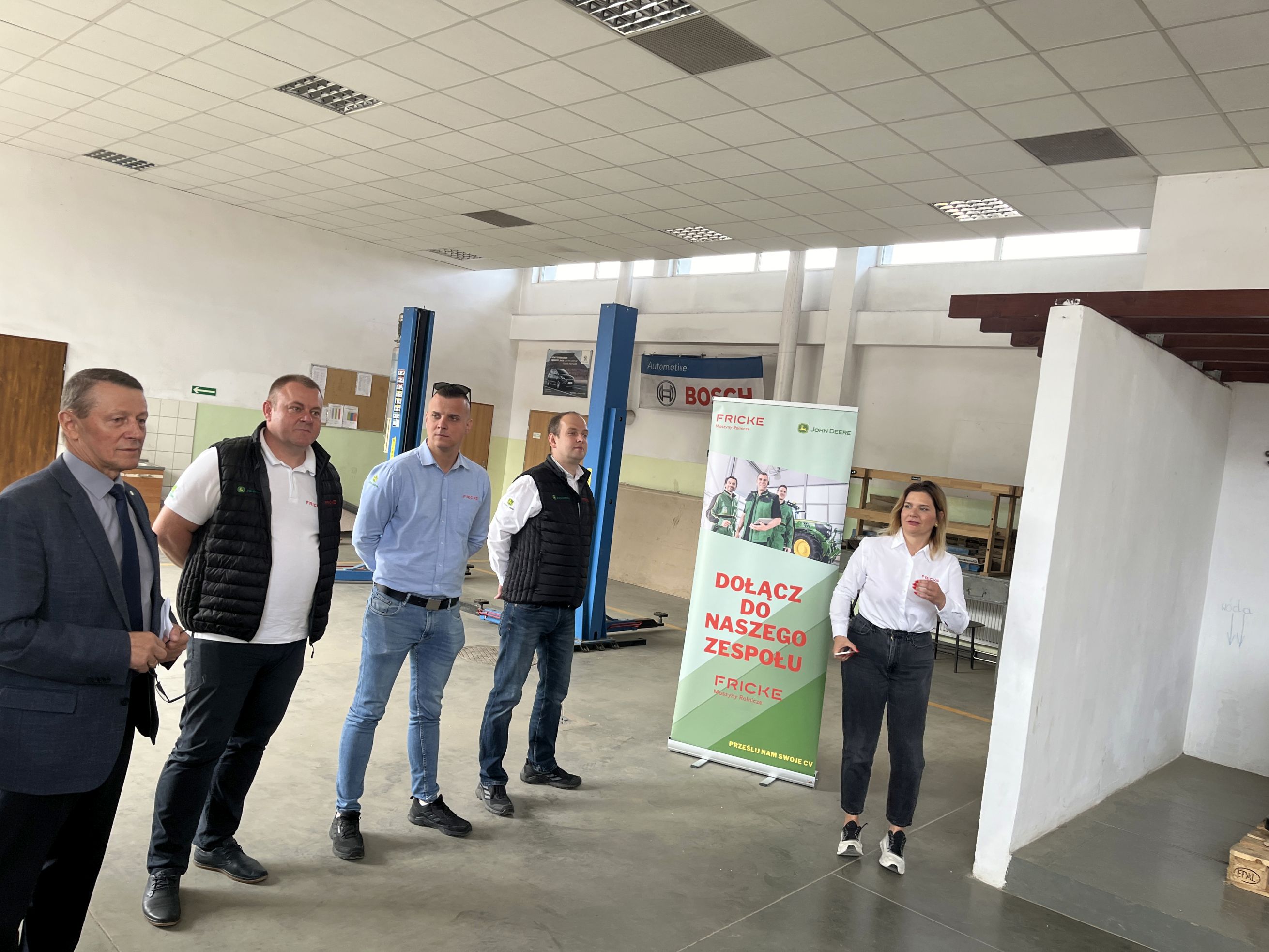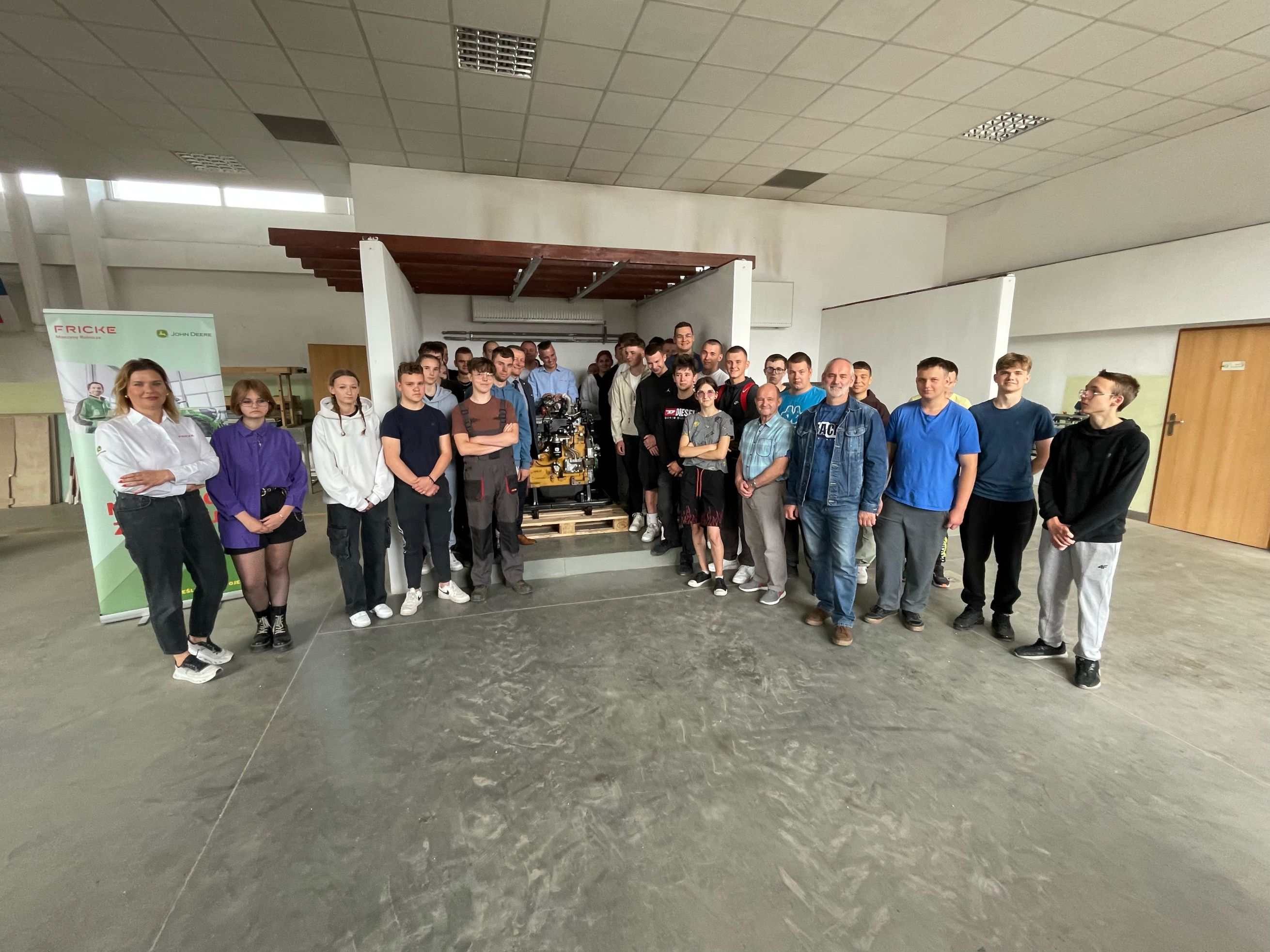 12 czerwca 2024 roku przedstawiciele firmy FRICKE: Dyrektor Serwisu Marcin Hibner, HR ManagerAgata Lorenczewska, Kierownik Serwisu Mateusz Sydorczykoraz Kierownik Oddziału Pasłęk Łukasz Kownacki przekazali silnik John Deere 4045. Został on umieszczony w szkolnych warsztatach.