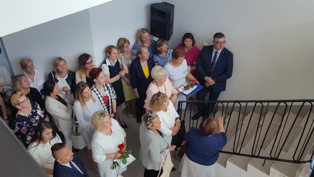 Po złożeniu życzeń i gratulacji na ręce dyrektor Teresy Brewki nastąpiło uroczyste przecięcie wstęgi. Następnie goście obejrzeli siedzibę Poradni.