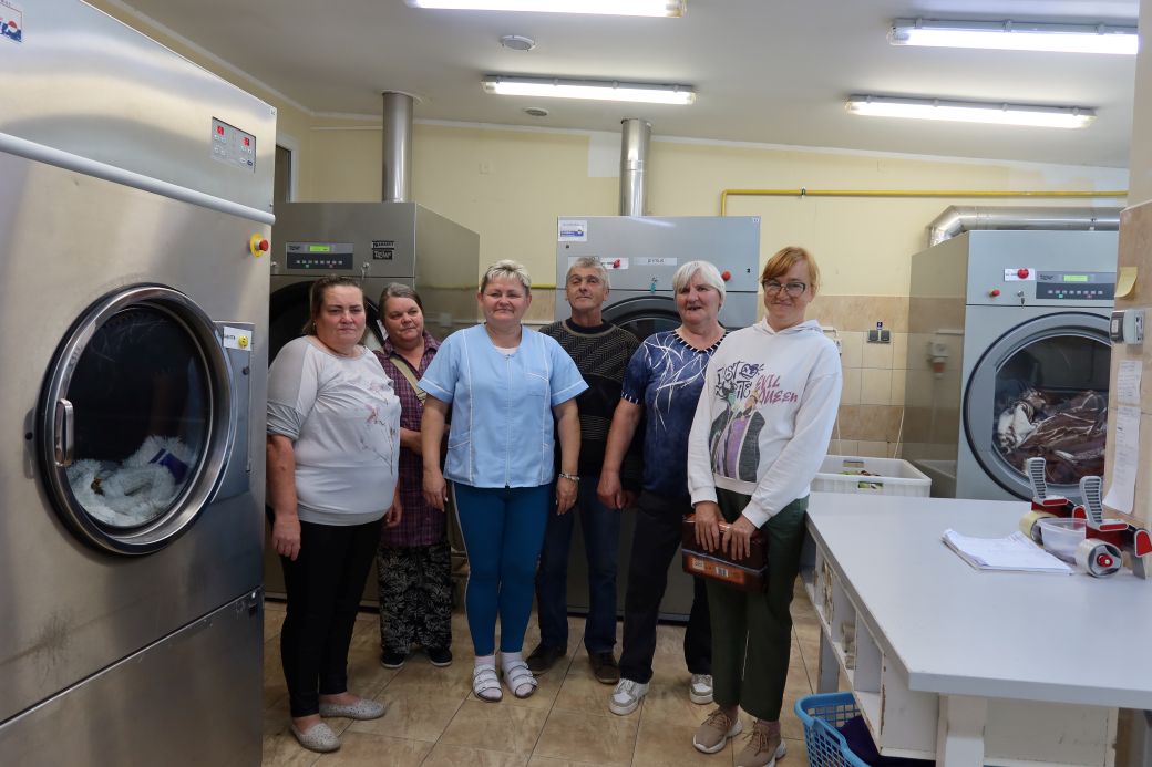 W trakcie wizyty uczestnicy zobaczyli, jak wygląda codzienna praca w pralni – poznali proces przyjmowania, sortowania, prania i maglowania. Pracownicy pralni chętnie dzielili się swoim doświadczeniem i odpowiadali na pytania dotyczące obsługi profesjonalnych urządzeń pralniczych.
