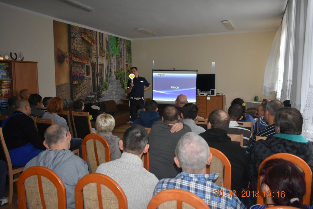 30 października aspirant sztabowy Wiktor Kaczmarek – policjant z Wydziału Ruchu Drogowego w Elblągu spotkał się z uczestnikami Środowiskowego Domu Samopomocy i Warsztatu Terapii Zajęciowej przy DPS „Krokus” w Przezmarku. Prelekcja dotyczyła bezpieczeństwa pieszych w ruchu drogowym oraz skutkach ich nieprzestrzegania, czego efektem są wypadki drogowe z udziałem pieszych.