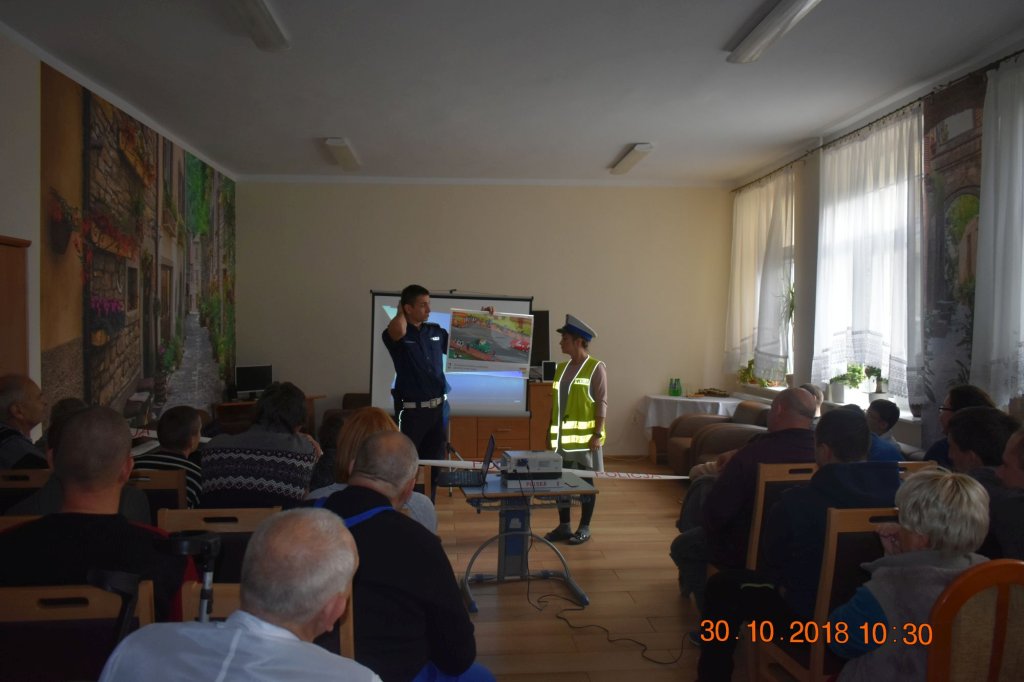 Policjant zaakcentował jak ważne jest posiadanie przez pieszego uczestnika ruchu elementów odblaskowych. Filmy wyświetlone podczas spotkania pokazywały co może nas spotkać w wyniku nieuwagi na drodze. Wiele pozytywnych emocji towarzyszyło spotkaniu, uczestnicy byli bardzo aktywni i widać było ich zaangażowanie.