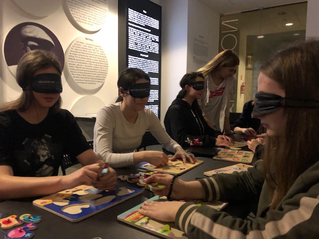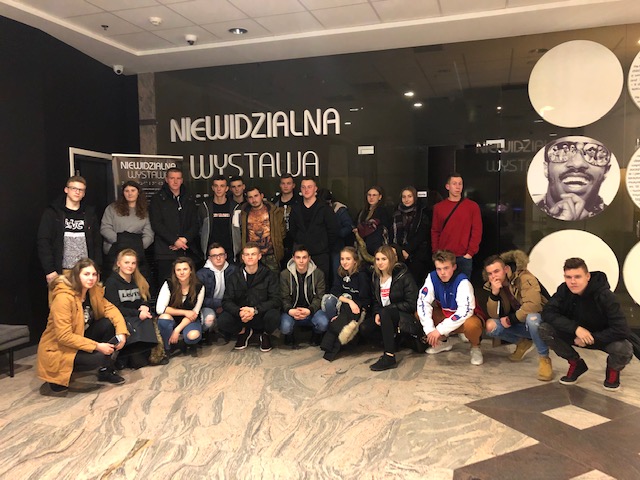 Kolejnym punktem zwiedzania była Niewidzialna. Wystawa Niewidzialna to wyjątkowa interaktywna podróż w niewidzialny świat, podczas której można wypróbować, jak radzić sobie w codziennych sytuacjach bez pomocy wzroku – wyłącznie za pomocą zmysłu słuchu, dotyku, węchu. Pod opieką niewidomych przewodników przez godzinę zwiedzający przechodzili przez sześć różniących się od siebie całkowicie zaciemnionych pomieszczeń - w miejskim zgiełku, po mieszkaniu, na zakupach.
