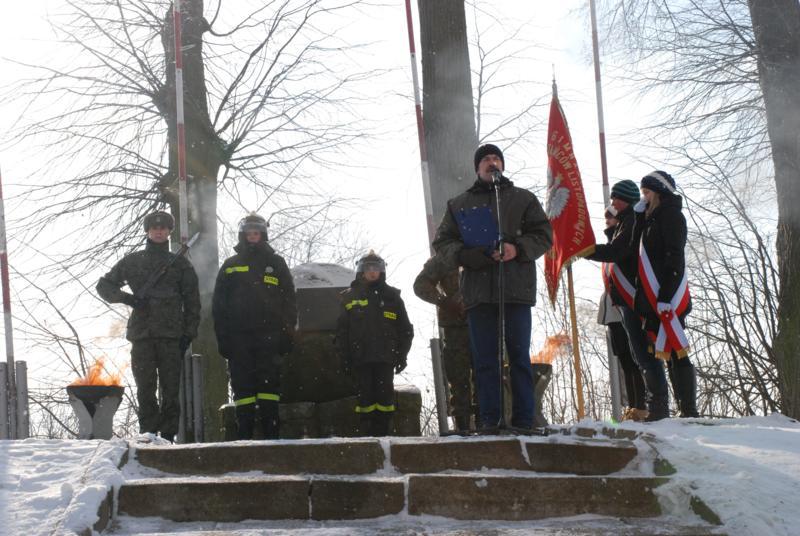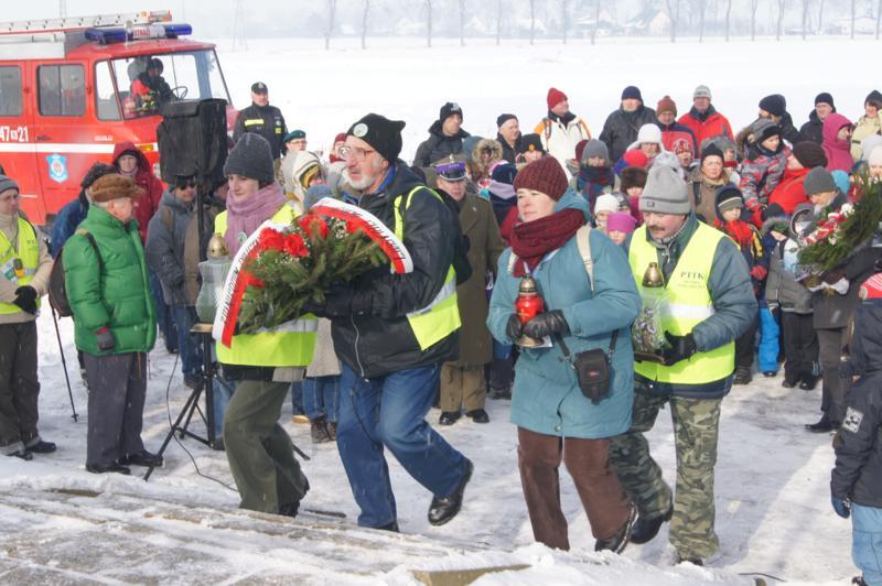 O godzinie 11:30 nastąpiło rozpoczęcie uroczystości przed pomnikiem w Fiszewie, którą poprowadził kol. Leszek Marcinkowski. Po powitaniu zgromadzonych gości nakreślił pokrótce historię masakry w Fiszewie z dnia 27 stycznia 1832 roku. Przybyli goście, przedstawiciele władz oraz uczestnicy złożyli kwiaty i zapalili znicze pod pomnikiem, kapelan odmówił krótką modlitwę.