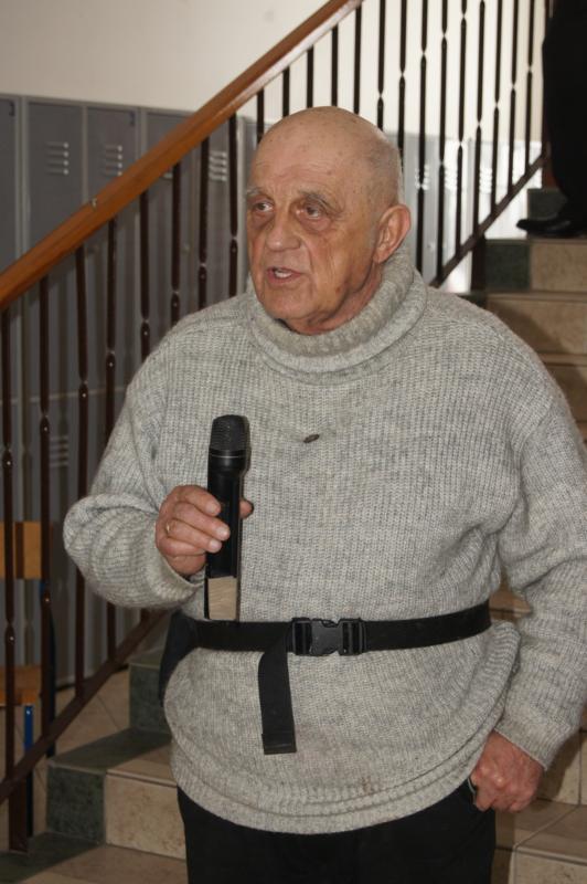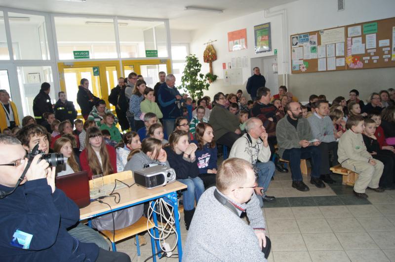 Następnie autokarami uczestnicy złazu pojechali do Gimnazjum im. Powstańców Listopadowych w Gronowie Elbląskim, gdzie w stołówce zjedli pyszną grochówkę. Kiedy już wszyscy posilili się ciepłym posiłkiem, nastąpiło rozpoczęcie dalszej części złazu. W imieniu organizatorów zebranych przywitali Leszek Marcinkowski i Alicja Gronek. Wstępem do wydarzeń w Fiszewie był wiersz “Wyjście z Polski” Seweryna Goszczyńskiego, wyrecytowany przez uczennicę gimnazjum. Następnie wiceprezes Zarządu Oddziału PTTK Ziemi Elbląskiej w Elblągu Sławomir Kałabun wręczył statuetki instytucjom i organizacjom, które przez minione 40 lat wspierały organizację złazu. Uhonorowano w ten sposób: Departament Turystyki Urzędu Marszałkowskiego Województwa Warmińsko-Mazurskiego w Olsztynie, Departament Sportu Urzędu Miejskiego w Elblągu, Żołnierzy z 16 Pomorskiej Dywizji Zmechanizowanej im. Króla Kazimierza Jagiellończyka w Elblągu, Strażaków z Ochotniczej Straży Pożarnej w Fiszewie, Gimnazjum im. Powstańców Listopadowych w Gronowie Elbląskim, Gminę Stare Pole, Gminę Gronowo Elbląskie, Klub Turystów Pieszych PTTK „Delta”, Sołectwo w Fiszewie, Koło Gospodyń Wiejskich w Fiszewie. Podziękowano również pionierom i inicjatorom złazu: Andrzejowi Wiśniewskiemu, Mietkowi Peruckiemu oraz Zenonowi Urbaniakowi. W dalszej części uroczystości wysłuchaliśmy gawędy i wspomnień Andrzeja Wiśniewskiego, honorowego członka PTTK, będącego inicjatorem pierwszego złazu do Fiszewa w 1972 roku. Potem wysłuchaliśmy prezentacji nauczycieli i uczniów Gimnazjum.