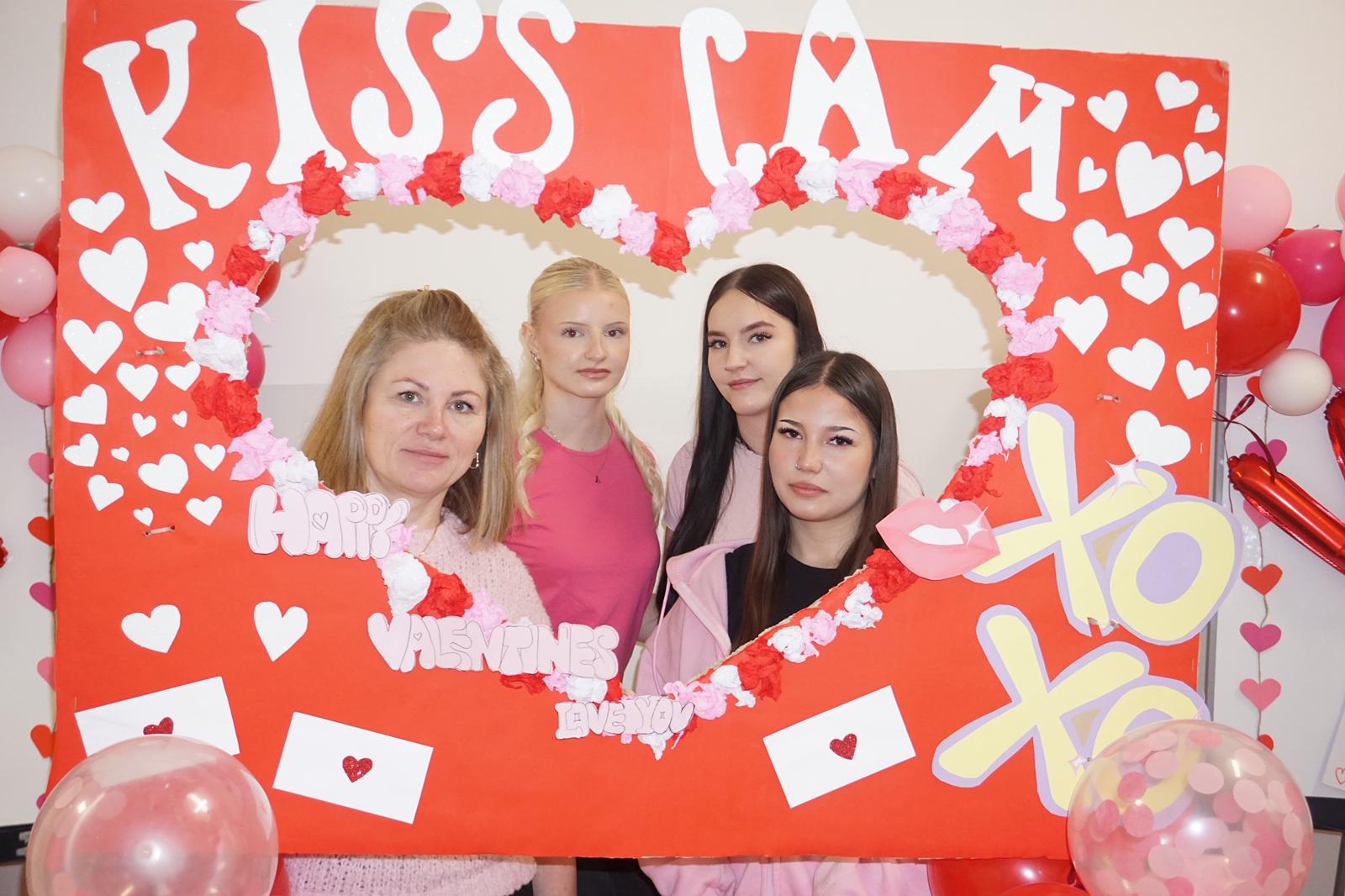 Dla fanów pamiątek przygotowano profesjonalną ściankę walentynkową, przy której każdy mógł zrobić sobie stylowe zdjęcie. Niezależnie od tego, czy były to romantyczne fotografie z drugą połówką, czy szalone, grupowe ujęcia z paczką przyjaciół- ścianka stała się najbardziej obleganym miejscem w szkole. Wasze uśmiechy są najlepszym dowodem na to, że walentynkowa zabawa udała się w stu procentach.