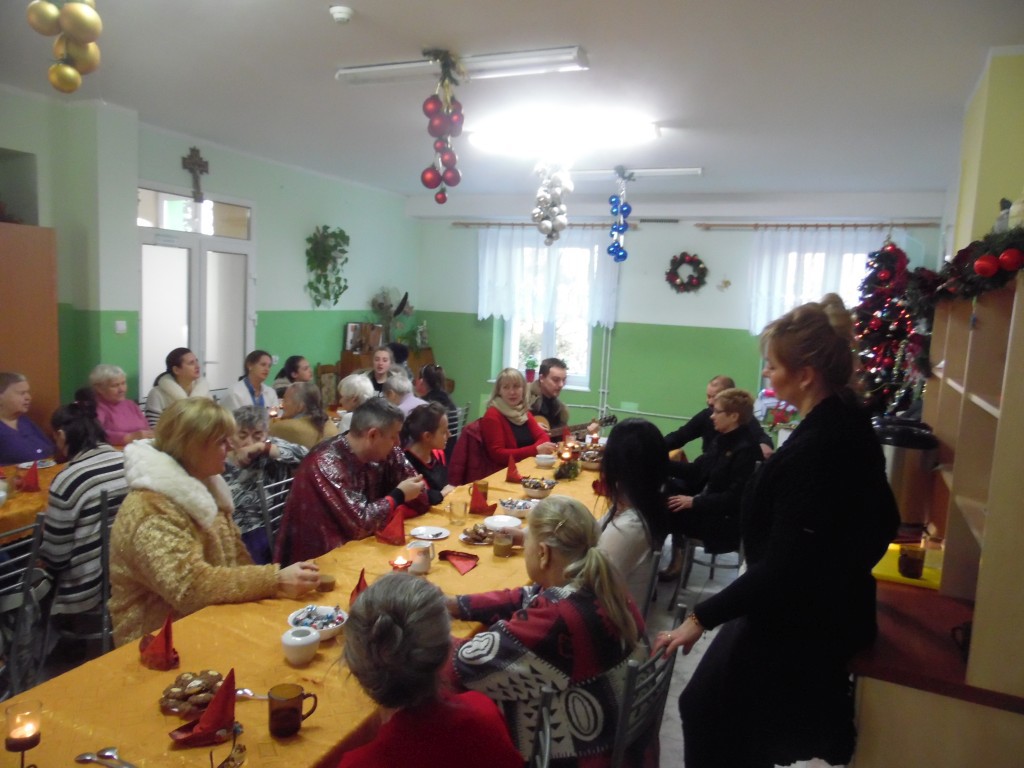 Po przedstawieniu, przy akompaniamencie gitary, odbyło się wspólne śpiewanie kolęd. W miłej atmosferze mieszkanki Domu spędziły całe przedpołudnie…