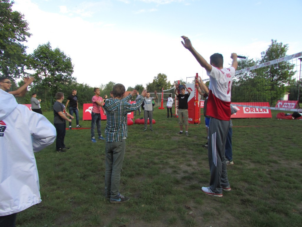 Niespodzianką dla wszystkich był profesjonalnie przygotowany trening piłki siatkowej z samym prawdziwym!) Andrzejem Wroną, Mistrzem Świata z 2014 roku oraz Katarzyną Zaroślińską, najlepsza atakującą, z drużyną zdobyła Puchar Polski. Gwiazdy sportu opowiedziały o swojej miłości do piłki siatkowej, o początkach i o tym kto ich zainspirował do sportu. Życzyli dzieciakom by oni sami na swej drodze znaleźli kogoś kto będzie dla nich autorytetem. Nie obyło się bez treningu, kilku podpowiedzi jak przyjmować i odbijać piłkę. A na koniec sesja zdjęciowa. Któż nie chciał zdjęcia i autografu...