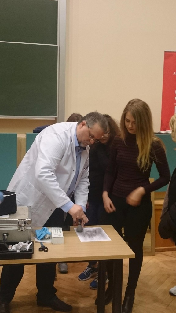 W programie przewidziano również uczestnictwo w wykładach i otwartych prezentacjach, podczas których uczniowie mogli poczuć się jak prawdziwi studenci. Dużym zainteresowaniem cieszył się wykład prowadzony przez ekspert Okręgowej Komisji Egzaminacyjnej Marię Pająk-Majewską „Jak przygotować się do egzaminu maturalnego z matematyki?” Naszej młodzieży klasy mundurowej nie mogło zabraknąć również na wykładzie dr Wojciecha Woska, wykładowcy WSAiB im. Kwiatkowskiego w Gdyni „Ślady na miejscu zbrodni”. Uczniowie dowiedzieli się, jak należy prawidłowo zabezpieczyć ślady w miejscu zdarzenia, poznali różne metody pracy kryminologa oraz mieli okazję zabezpieczyć pozostawione przez siebie ślady.