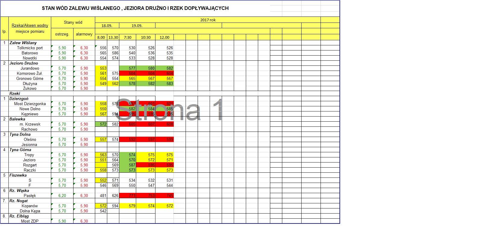 1. Na terenie Gminy Elbląg cały czas prowadzony jest monitoring obwałowań trzech rzek - Kowalewki, Granicznej, Elszki a także rz. Wąskiej oraz kanału Elbląskiego, Wyspy Nowakowskiej oraz cieków położonych wokół jeziora Drużno.