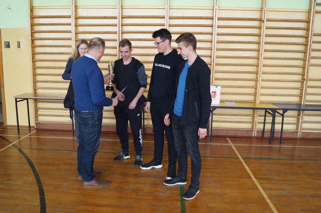Zespół Szkół Ekonomicznych i Technicznych w Pasłęku, w składzie: Przemysław Szymański, Sławomir Licznerski, Tomasz Przygoda, zwyciężył nad drużyną Zespołu Szkół w Pasłęku.