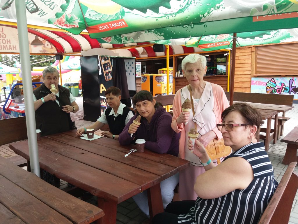 Cała wycieczka była bardzo ciekawa i pouczająca, a chwilami nawet budząca grozę. Tu i ówdzie słychać było porykiwania dzikich zwierząt, gadów, a niektóre nawet wyłaniały się z wody. Nie przestraszyły nas i mogłyśmy dalej spacerować, podziwiać przyrodę, przyglądać się bawiącym dzieciom. Panie zauważyły gości z zagranicy, gdyż rozmowy prowadzili w obcym języku. W przerwie można było napić się kawy, zjeść lody czy gofra. A po wyjściu z parku, kiedy poczułyśmy się głodne, wstąpiłyśmy do restauracji mieszczącej się na parkingu, gdzie każda z pań zamówiła sobie obiad. I tylko pogoda miała okazała się kapryśna i nie pozwoliła nam dokończyć obiadu pod parasolem. Na szczęście restauracja pomieściła w swoich wnętrzach wszystkich klientów.
