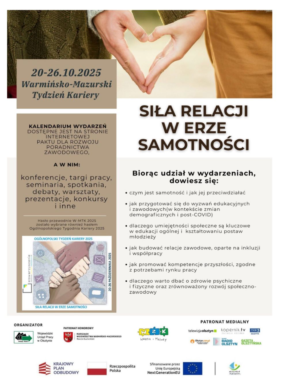 W dniach 20–26 października 2025 r. Zespół Szkół Ekonomicznych i Technicznych w Pasłęku włączył się w obchody Ogólnopolskiego Tygodnia Kariery, który w tym roku odbywa się pod hasłem „Siła relacji w erze samotności”. 20 października doradca zawodowy ZSEiT uczestniczył w konferencji inaugurującej War…