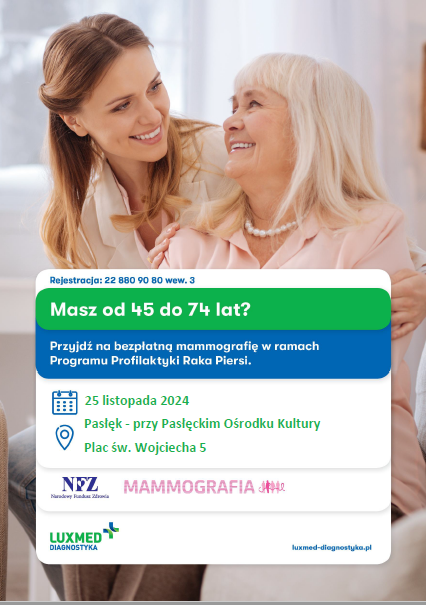 LUX MED Diagnostyka zaprasza Panie w wieku od 45 do 74 lat na bezpłatne badania mammograficzne w ramach Programu Profilaktyki Raka Piersi finansowanego przez NFZ.