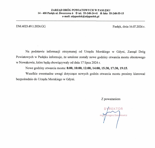 Ważność (cz. urz.) od godz. 07:30 dnia 20.07.2024 (sobota) do godz. 07:30 dnia 21.07.2024 (niedziela)
