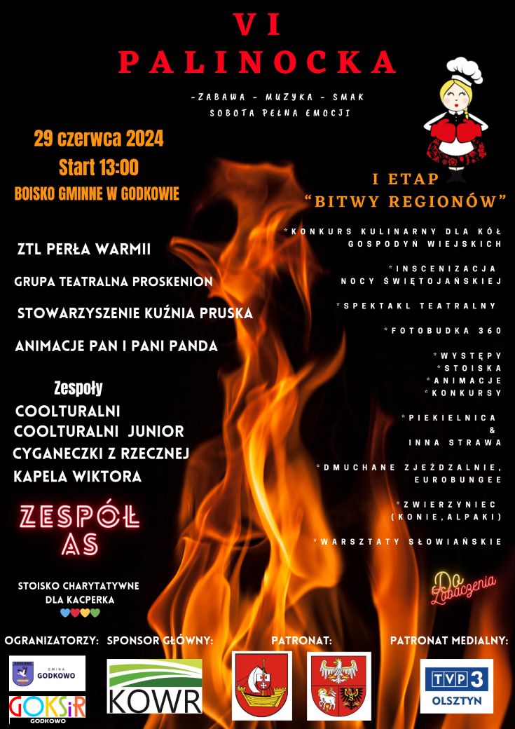 29 czerwca br. na boisku Gminnym w Godkowie od godz. 13:00, odbywać się będzie VI Palinocka, cykliczna impreza plenerowa w słowiańskim klimacie. W tym roku dodatkowo przeprowadzony zostanie I etap Konkursu Kulinarnego "Bitwa Regionów". W konkursie udział weźmie 15 Kół Gospodyń Wiejskich z kilku powi…