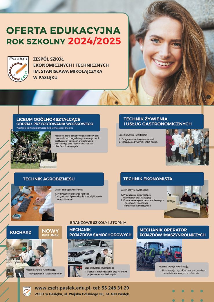 Czytaj więcej: Oferta kształcenia w ZSEiT w Pasłęku na rok szkolny 2024/2025: