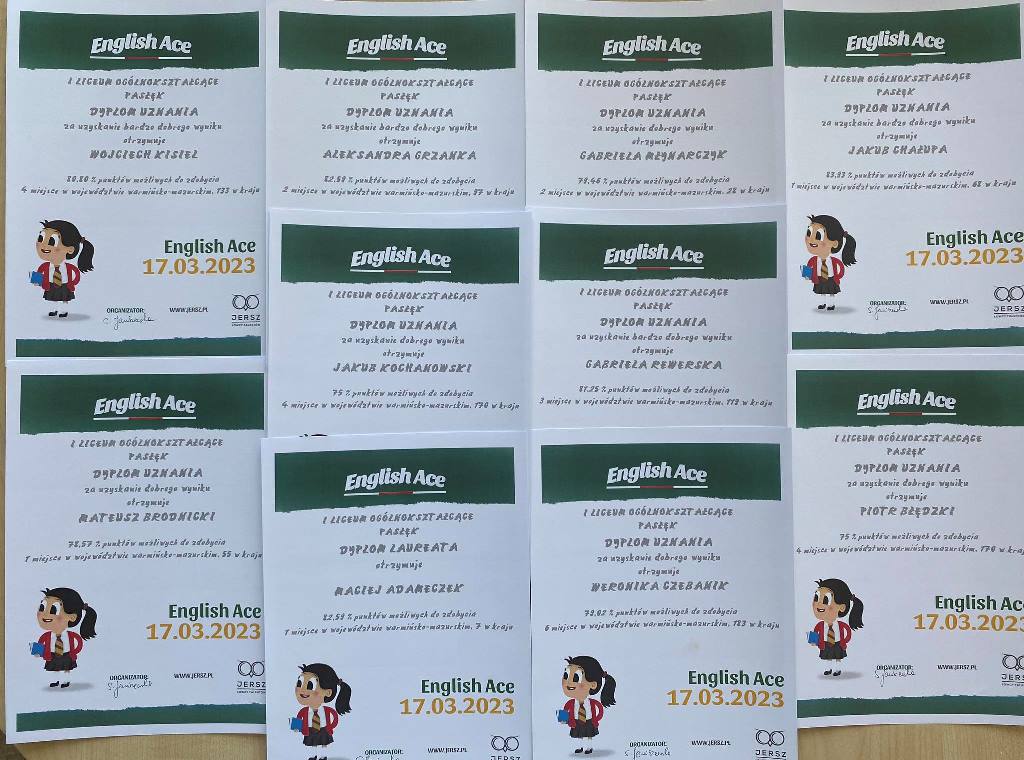 Wyniki ogólnopolskiego konkursu języka angielskiego English ACE 2023