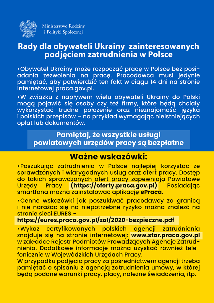 Czytaj więcej: rady dla obywateli ua zainteresowanych podjęciem pracy