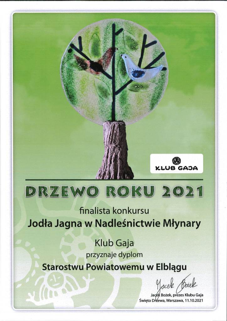Starostwo Powiatowe w Elblągu dzieli się z Państwem przyjemnym faktem otrzymania podziękowania od organizatora konkursu „Drzewo Roku 2021”.