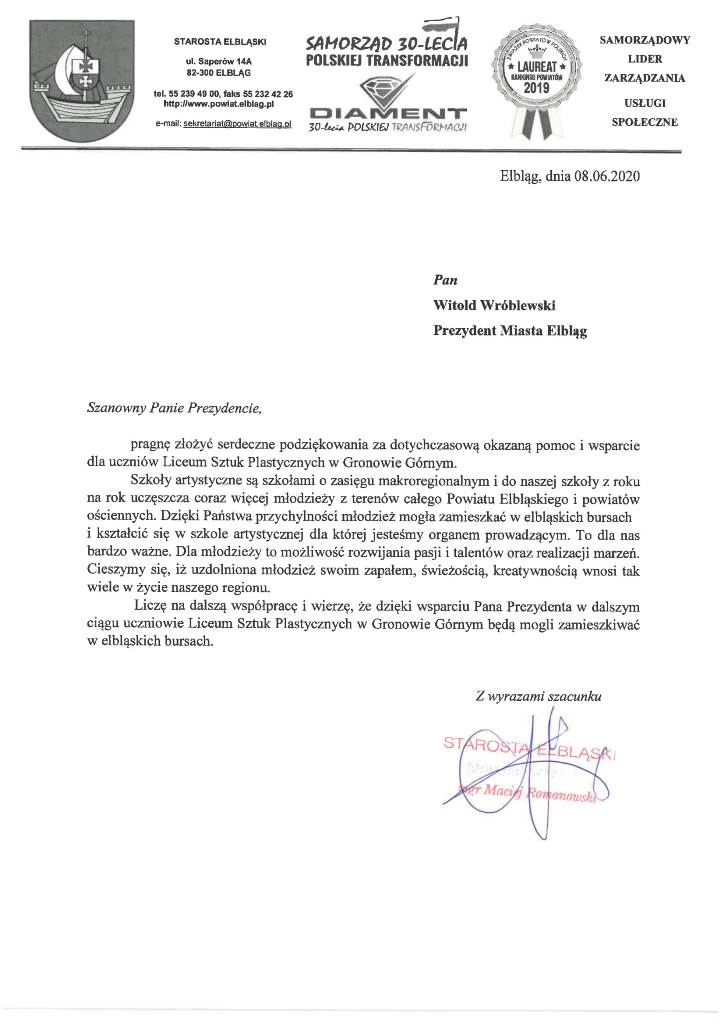 Czytaj więcej: Życzenia, gratulacje i niespodzianka Starosty Elbląskiego dla Zespołu Szkół w Pasłęku