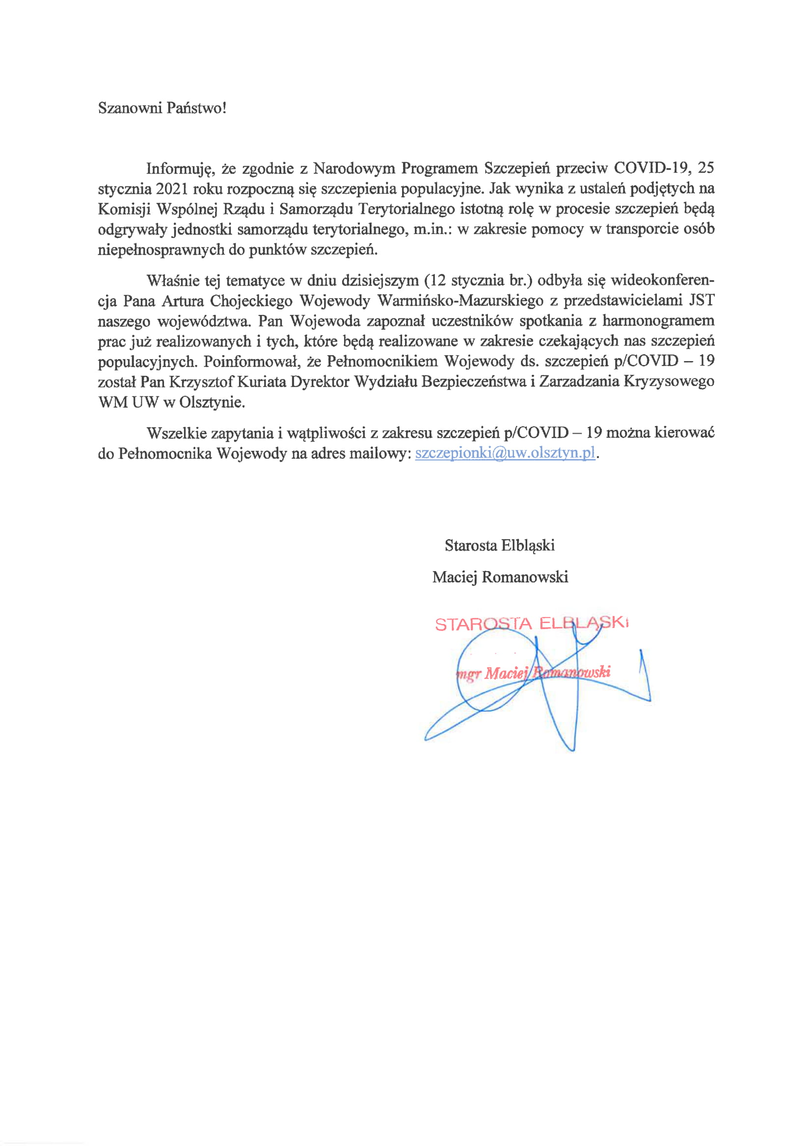 Czytaj więcej: Informacja Starosty dot. szczepień przeciwko COVID-19