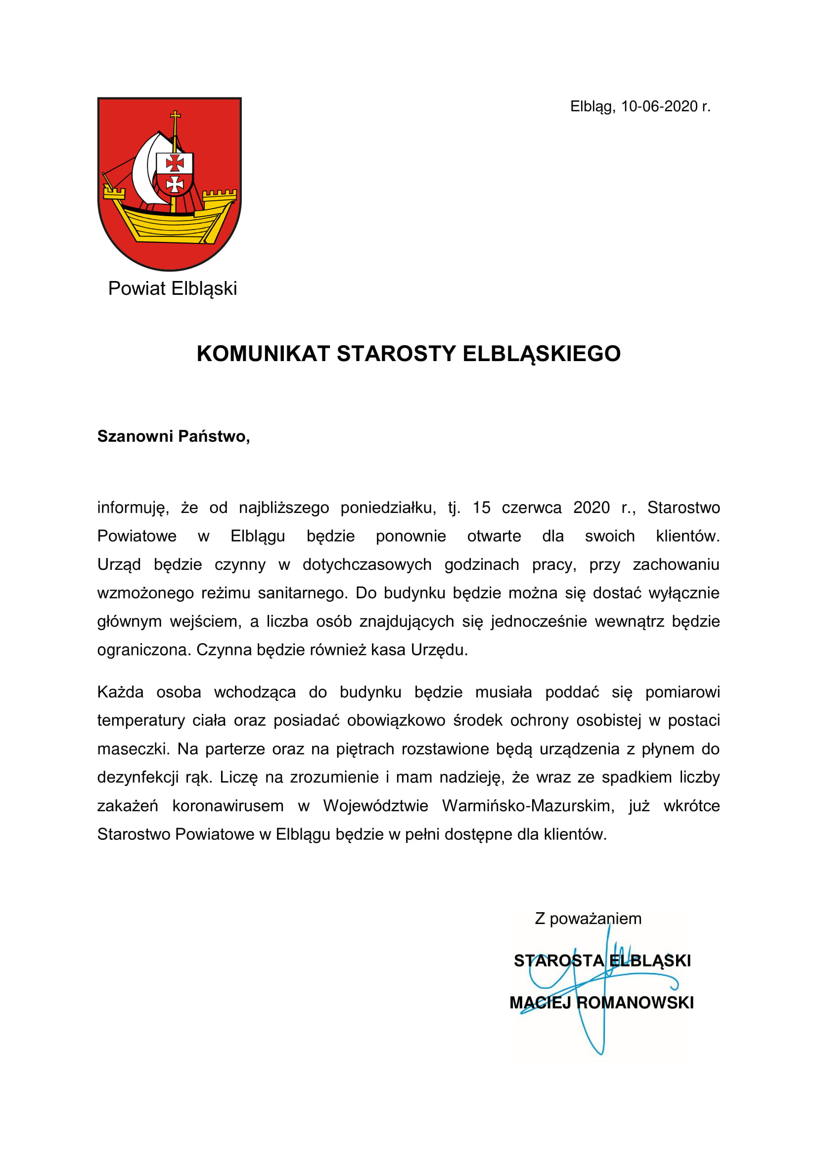 Ważność (cz. urz.) od godz. 07:30 dnia 12.06.2020 do godz. 07:30 dnia 13.06.2020