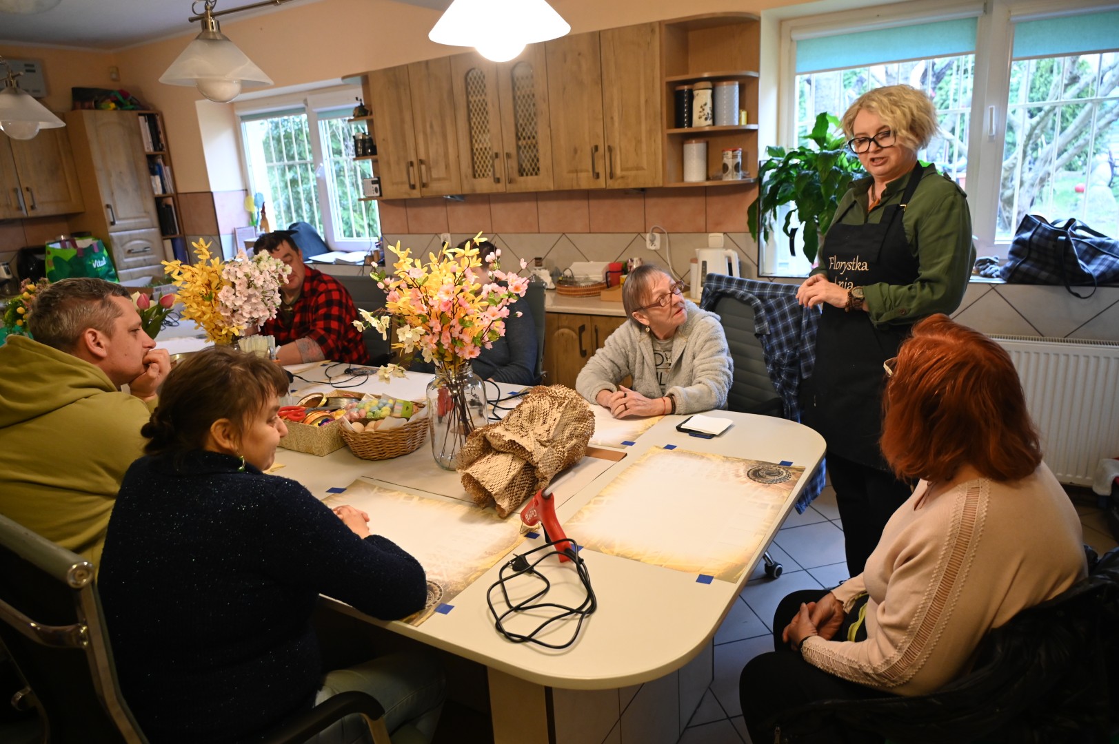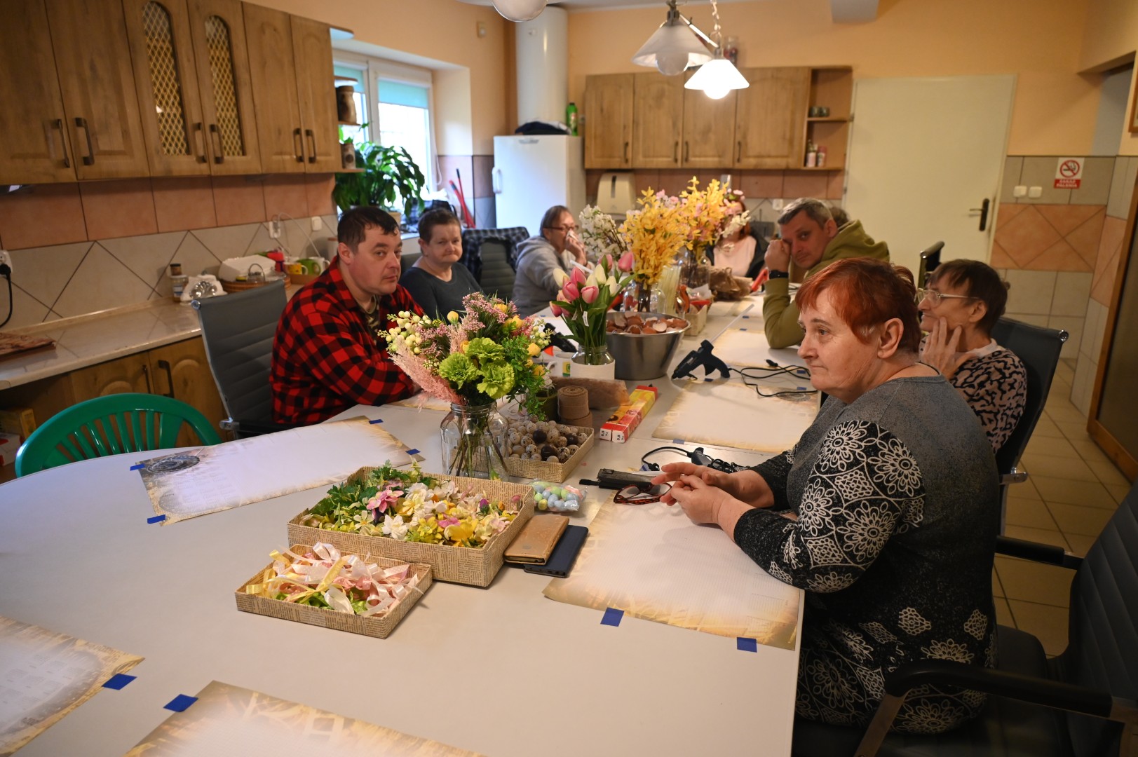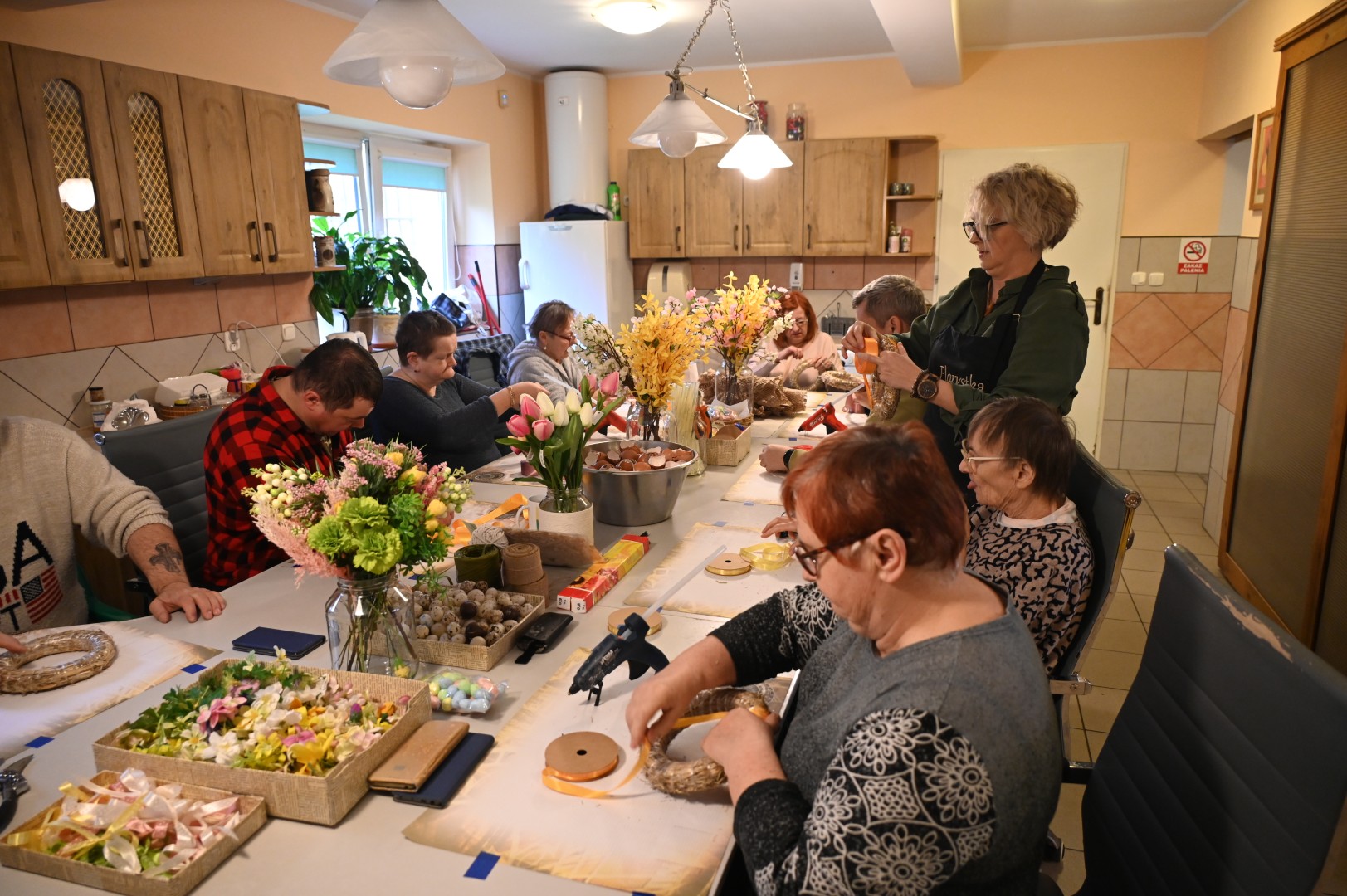 Wijąc i strojąc te nasze kompozycje narobiliśmy w pracowni plastycznej i życia codziennego tolkmickich Warsztatów Terapii Zajęciowej strasznego bałaganu. Zdradzamy zatem kolejny sekret sztuki florystycznej przekazany nam przez Panią Annę – podczas egzaminu uprawniającego do wykonywania zawodu florysty, komisja zwraca uwagę nie tylko na zaangażowanie i efekt naszego działania, liczy się także dbałość o miejsce pracy, o utrzymywanie na stanowisku porządku, warto o tym pamiętać.