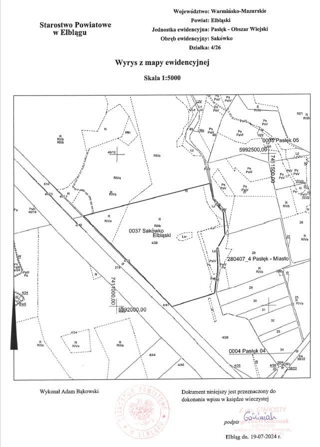 Nieruchomość oznaczona, jako działka nr 47/18 o dokładnej powierzchni 7, 6636 ha, jest położona w obrębie Sakówko, gm. Pasłęk i została nabyta przez firmę BIOFEED Sp. z o.o. z siedzibą w Rajkowach. Spółka BIOFEED jest polskim producentem i dostawcą innowacyjnych, bezpiecznych i zrównoważonych rozwiązań żywieniowych dla zwierząt i posiada już swój zakład w Pasłęku przy ul. Westerplatte.