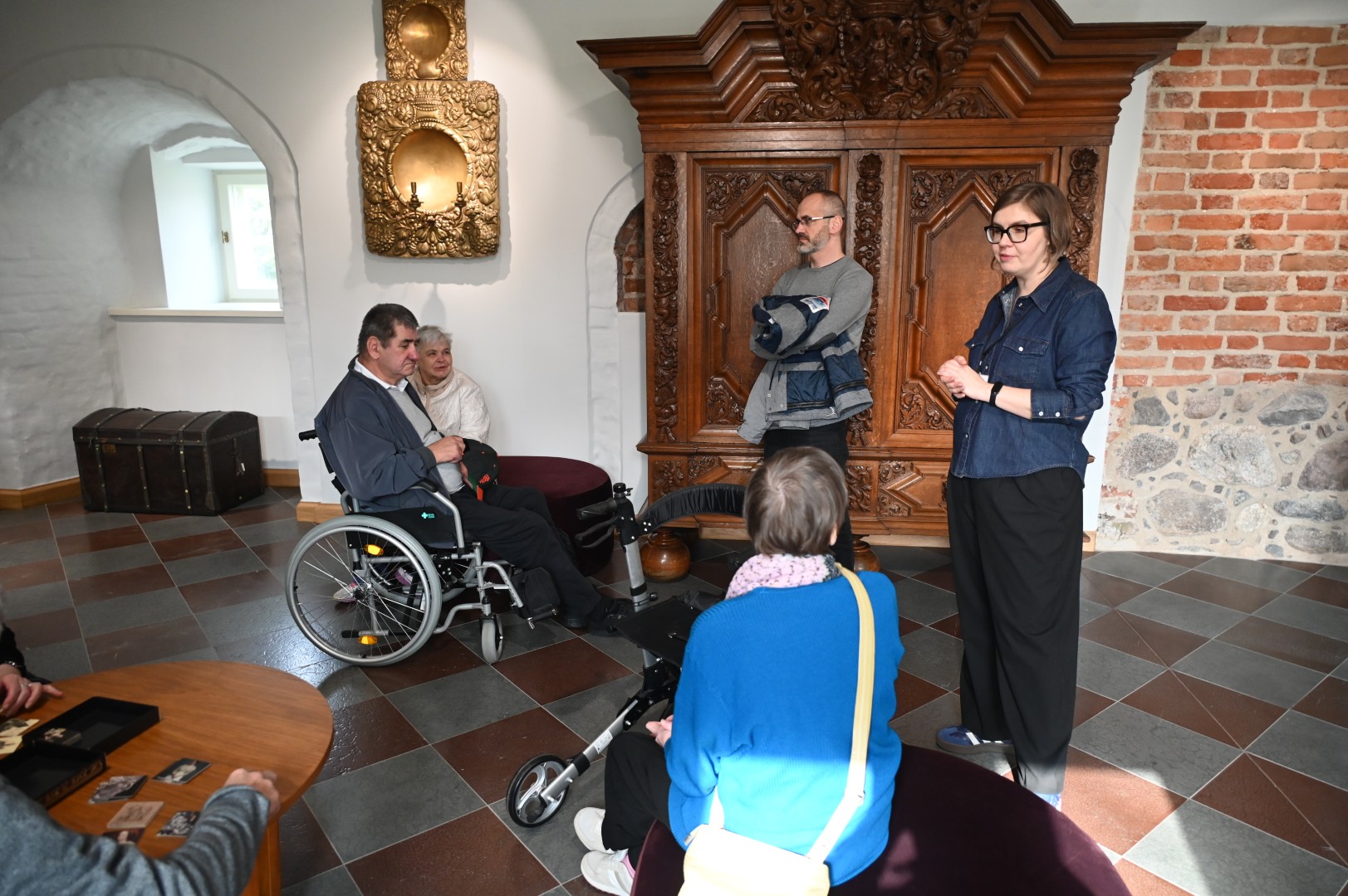Zaiste, to co na nas czeka po przekroczeniu wierzei niegdysiejszej siedziby arystokratycznego rodu zu Dohna, jest zachwycające. W pachnących świeżością przestronnych salach zgromadzono tyle wspaniałych eksponatów, że nawet pobieżne zapoznanie się z nimi zapiera dech i osłabia ciało, zwłaszcza nogi, ale jest zarazem prawdziwą ucztą dla duszy. Przeszedłszy i obejrzawszy siedem (!) zaaranżowanych wystaw, wysłuchawszy naszpikowanej szczegółami narracji Pani Kierownik Angeliki Rejs, poczuliśmy się jak wyżęci, myśli nam się poplątały i uszło z nas powietrze, jak z pękniętego balona. Ależ to wszystko jest wspaniałe, imponujące w każdym calu, niezwykłe! Celnie podsumowała to jedna z naszych podopiecznych - Pani Krystyna, emerytowana nauczycielka - mówiąc: „Nigdy jeszcze nie byłam w takim muzeum, trudno uwierzyć, że tyle cudów można zobaczyć w tak małym mieście”.