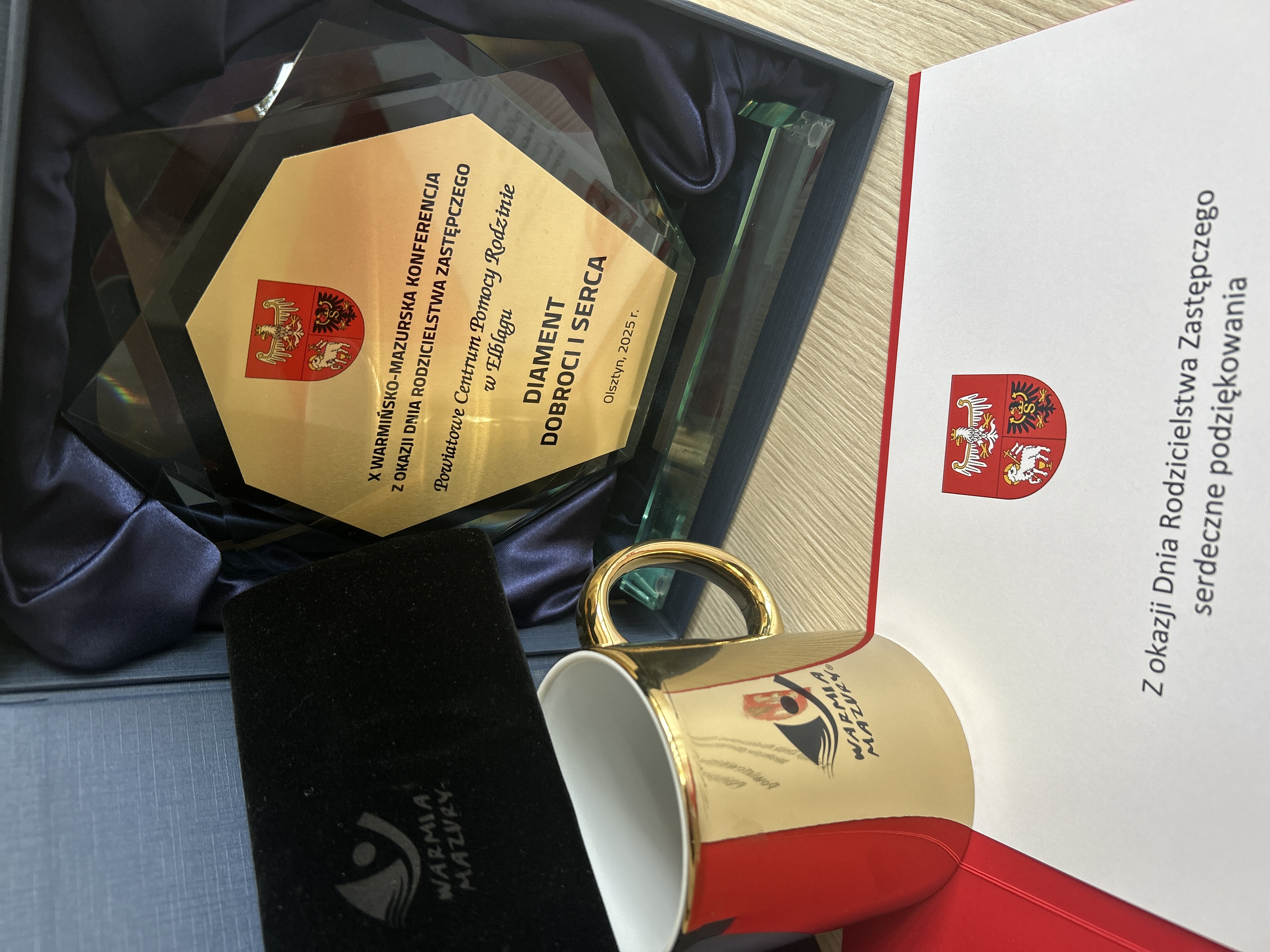 Powiatowe Centrum Pomocy Rodzinie w Elblągu otrzymało statuetkę “Diament Dobroci i Serca”! Dziękujemy za to wyróżnienie – to dla nas ogromna motywacja do dalszej pracy.