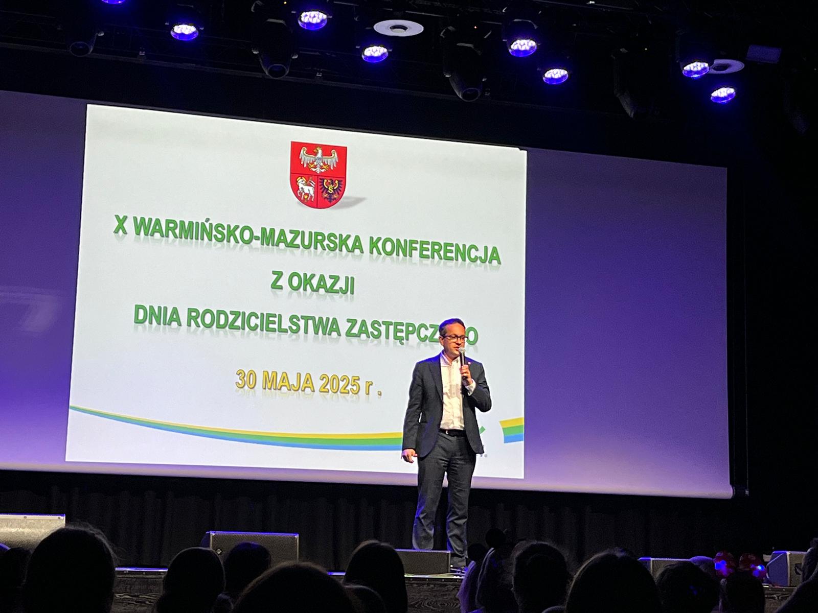 Ten dzień na długo zapisze się w naszej pamięci. Mieliśmy zaszczyt uczestniczyć w X Warmińsko-Mazurskiej Konferencji z okazji Dnia Rodzicielstwa Zastępczego, która odbyła się w Teatrze Muzycznym UM w Olsztynie. To wyjątkowe wydarzenie pełne wzruszeń, inspiracji i radości – zarówno dla rodzin zastępczych, jak i dzieci. Jak to ujął Pan Robert Turlej - konferencja była wyjątkowa, ponieważ uczestniczyły w niej dzieci - podopieczni rodzin zastępczych. Wszyscy uczestnicy konferencji wybrali się również w niezwykłą Muzyczną Podróż w Krainę Bajek. To muzyczne wydarzenie było nagrodą w konkursie prac plastycznych i literackich pt. ,, Zaloguj się do rodziny".