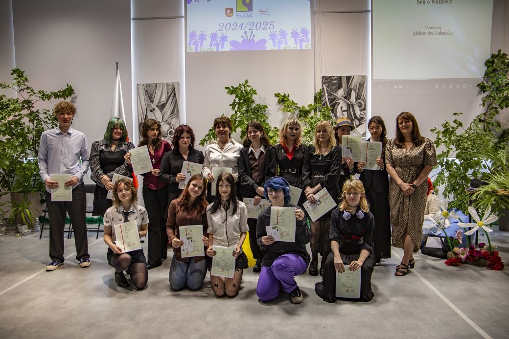 Podczas uroczystości wręczono również nagrody artystyczne wielu uczniom, którzy w minionym roku szkolnym wyróżnili się twórczo i osiągali sukcesy w konkursach o zasięgu lokalnym, ogólnopolskim i międzynarodowym. Wyróżnieni zostali także nauczyciele prowadzący - mentorzy, których pasja, zaangażowanie i opieka artystyczna miały nieoceniony wpływ na rozwój młodych twórców.
