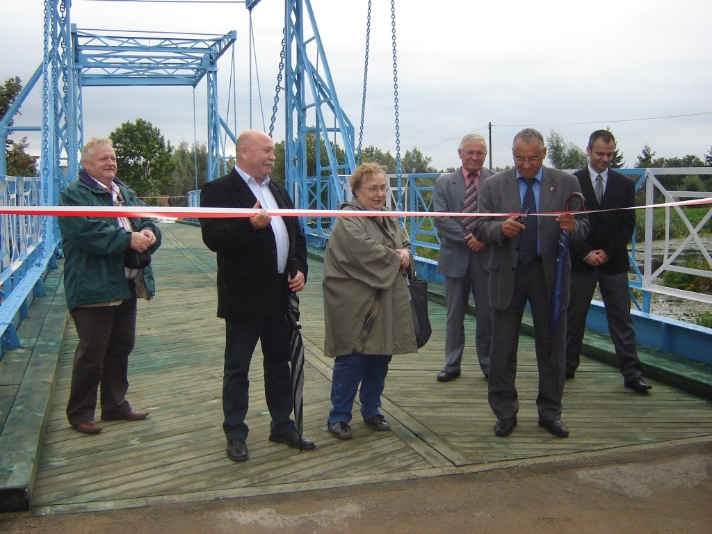 W uroczystym oddaniu mostu do użytku po remoncie wzięli udział przedstawiciele władz samorządowych: powiatu elbląskiego – starosta Sławomir Jezierski, wicestarosta Maciej Romanowski, wójt gminy Markusy Wacław Wielesik, wójt gminy Gronowo Elbląskie Marcin Ślęzak a także dyrektor Zarządu Dróg Powiatowych Tadeusz Przyborski. Byli również obecni przedstawiciele Wojewódzkiego Konserwatora Zabytków i nadzoru technicznego, którzy sprawowali pieczę nad przebiegiem prac konserwacyjnych.
