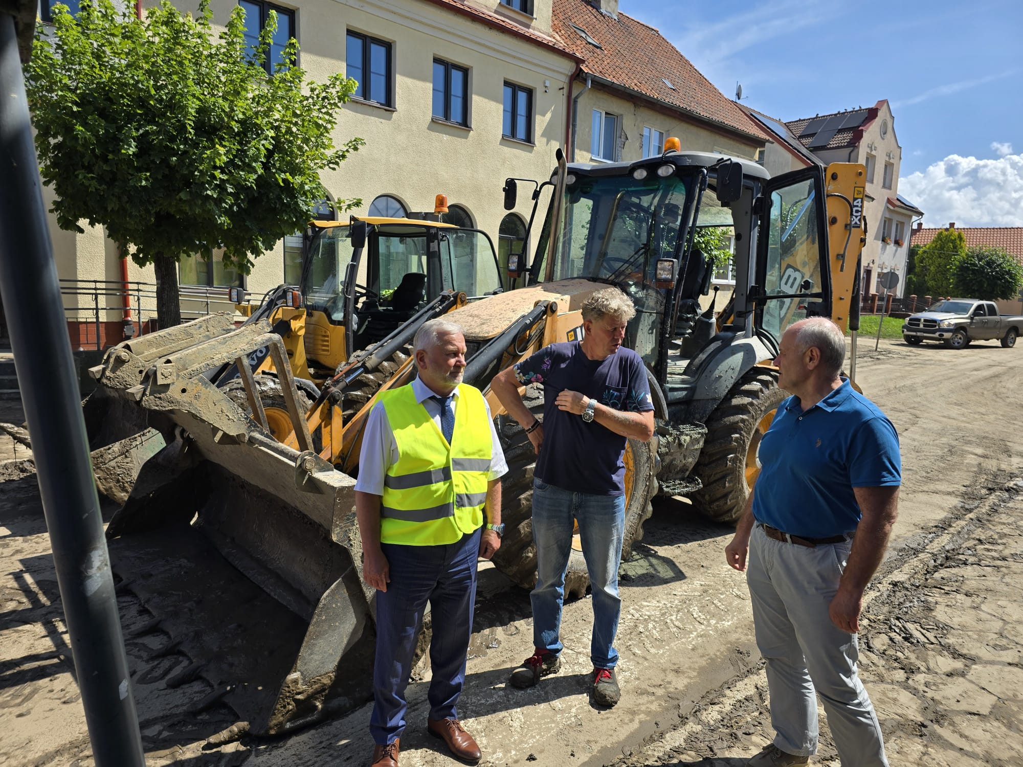 Rejon odwiedziły władze na szczeblu centralnym i wojewódzkim. Wiceminister Spraw Wewnętrznych i Administracji Wiesław Leśniakiewicz oraz Wojewoda Warmińsko-Mazurski Radosław Król osobiście przeprowadzili wizję lokalną zalanych terenów i oględziny najbardziej dotkniętych obszarów w powiecie elbląskim i mieście Elbląg. Podczas spotkań z lokalnymi włodarzami omówiono postęp prac porządkowych oraz plany na dalsze etapy wspólnych działań, które mają na celu ustabilizowanie sytuacji i zabezpieczenie mieszkańców przed kolejnymi zagrożeniami.