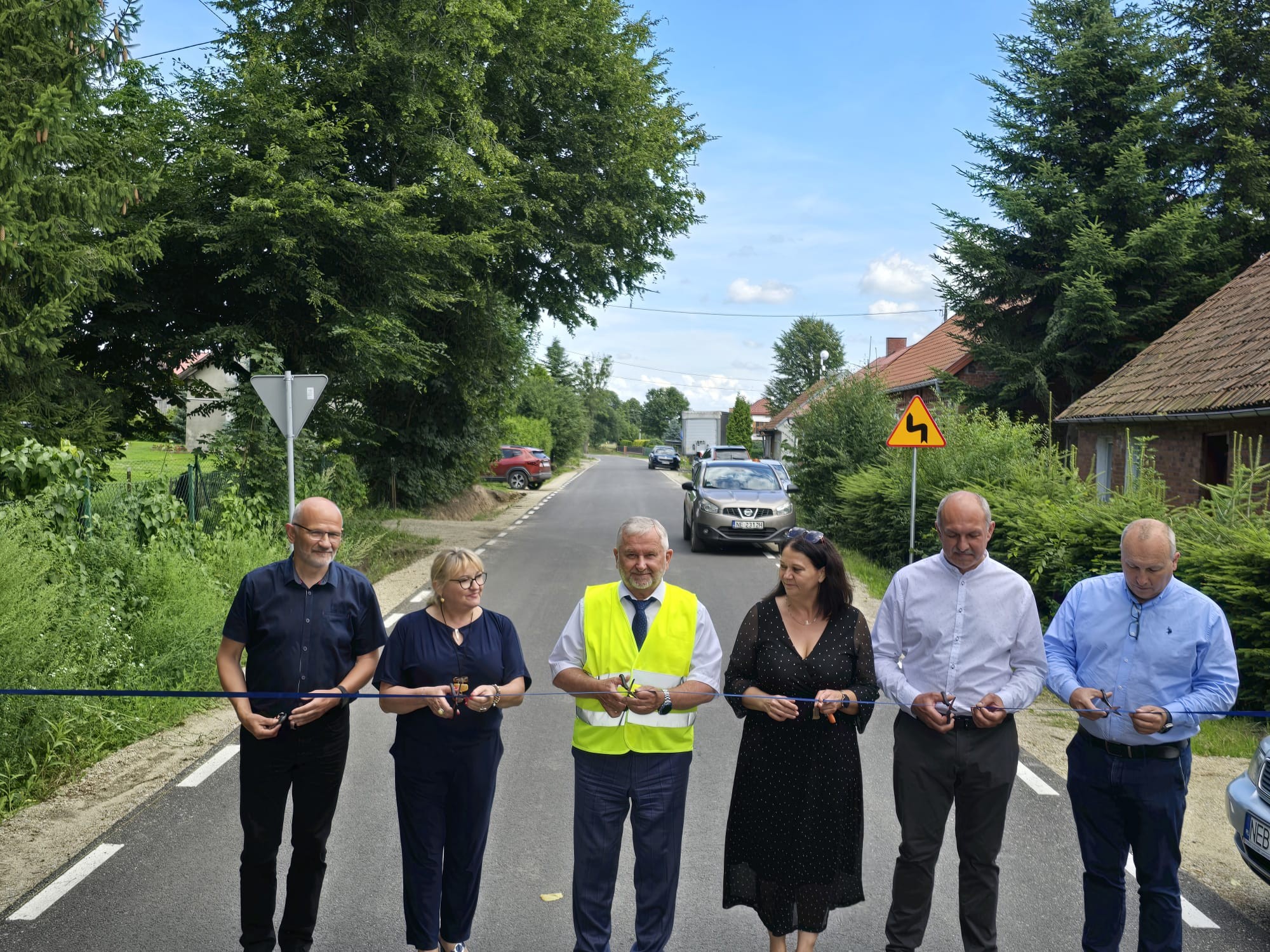Otwarcie wyremontowanych dróg odbyło się w dniu 30.07.2025 r. Z ramienia ZDP udział wzięli: Dyrektor ZDP w Pasłęku Grzegorz Daszkiewicz i Jacek Iwanicki kierownik robót oraz były Dyrektor Witold Wróblewski.