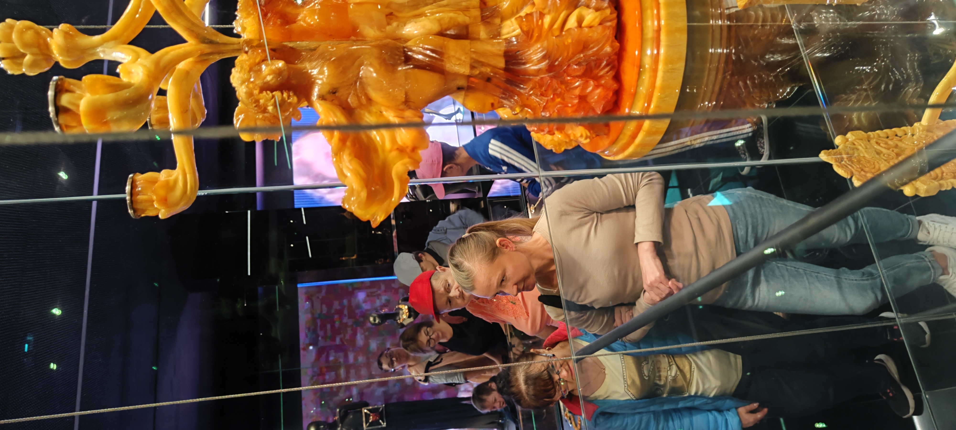 W Muzeum mieliśmy możliwość obejrzeć jedną z największych kolekcji bursztynu na świecie. Mogliśmy poznać proces powstawania bursztynu. Zobaczyć jak w bursztynową żywicę zatopiły się pradawne rośliny i zwierzęta. Poznaliśmy dzieje bursztyniarstwa w Polsce i na świecie. Dowiedzieliśmy się jak na przestrzeni lat zmieniał się proces wydobywania bursztynu. Podziwialiśmy małe i duże bryłki z bursztynu oraz kunsztowne wyroby z niego. Od Pani przewodnik dowiedzieliśmy się, że na świecie jest ok. 300 odmian żywic, w różnym wieku i kolorze. Mogliśmy podziwiać kunsztownie wykonane zarówno zabytkowe, jak i współczesne przedmioty z bursztynu. Z zainteresowaniem i z niemałym zaskoczeniem poznaliśmy wszechstronne zastosowanie bursztynu.