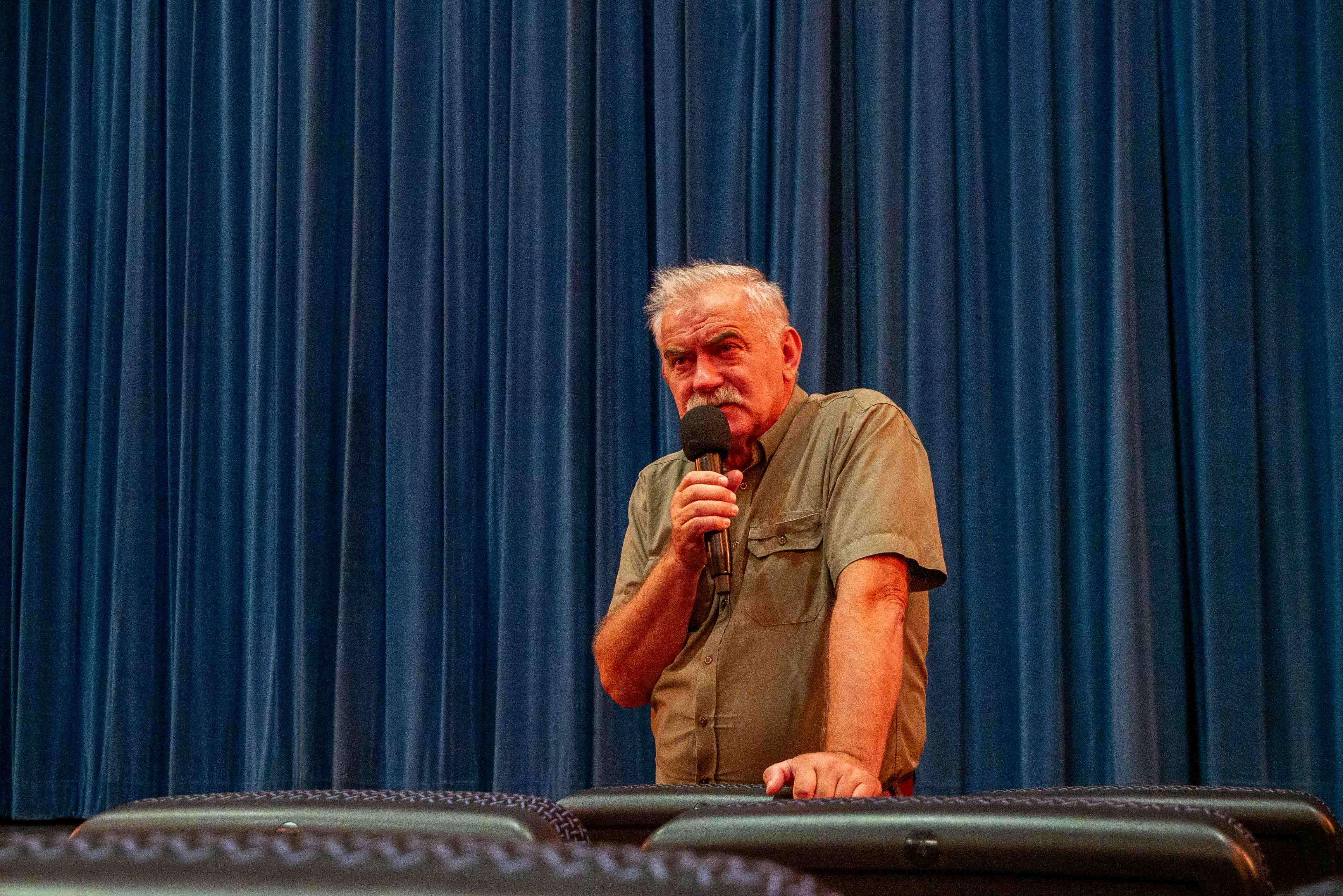 W poniedziałek, 8 września 2025 r., w sali widowiskowej Pasłęckiego Ośrodka Kultury odbyło się spotkanie młodzieży z Zespołu Szkół w Pasłęku z panem Kazimierzem Nóżką – emerytowanym leśniczym z Nadleśnictwa Baligród, znanym w całej Polsce miłośnikiem Bieszczadów i ich niezwykłej przyrody.