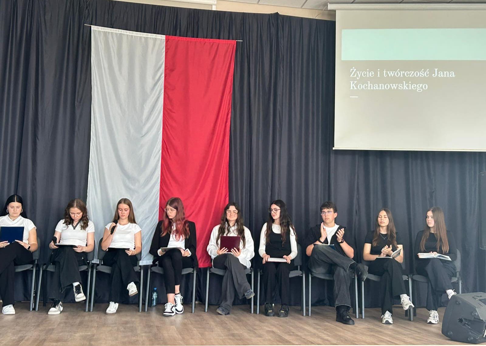 Tym razem wydarzenie poświęcone było twórczości Jana Kochanowskiego – jednego z najwybitniejszych poetów polskiego renesansu. Uczniowie wysłuchali fragmentów „Trenów”, „Pieśni”, „Odprawy posłów greckich” oraz „Fraszek”. Utwory te, mimo upływu wieków, wciąż zachwycają bogactwem języka i poruszają uniwersalne tematy ludzkich emocji, przemijania i refleksji nad życiem.