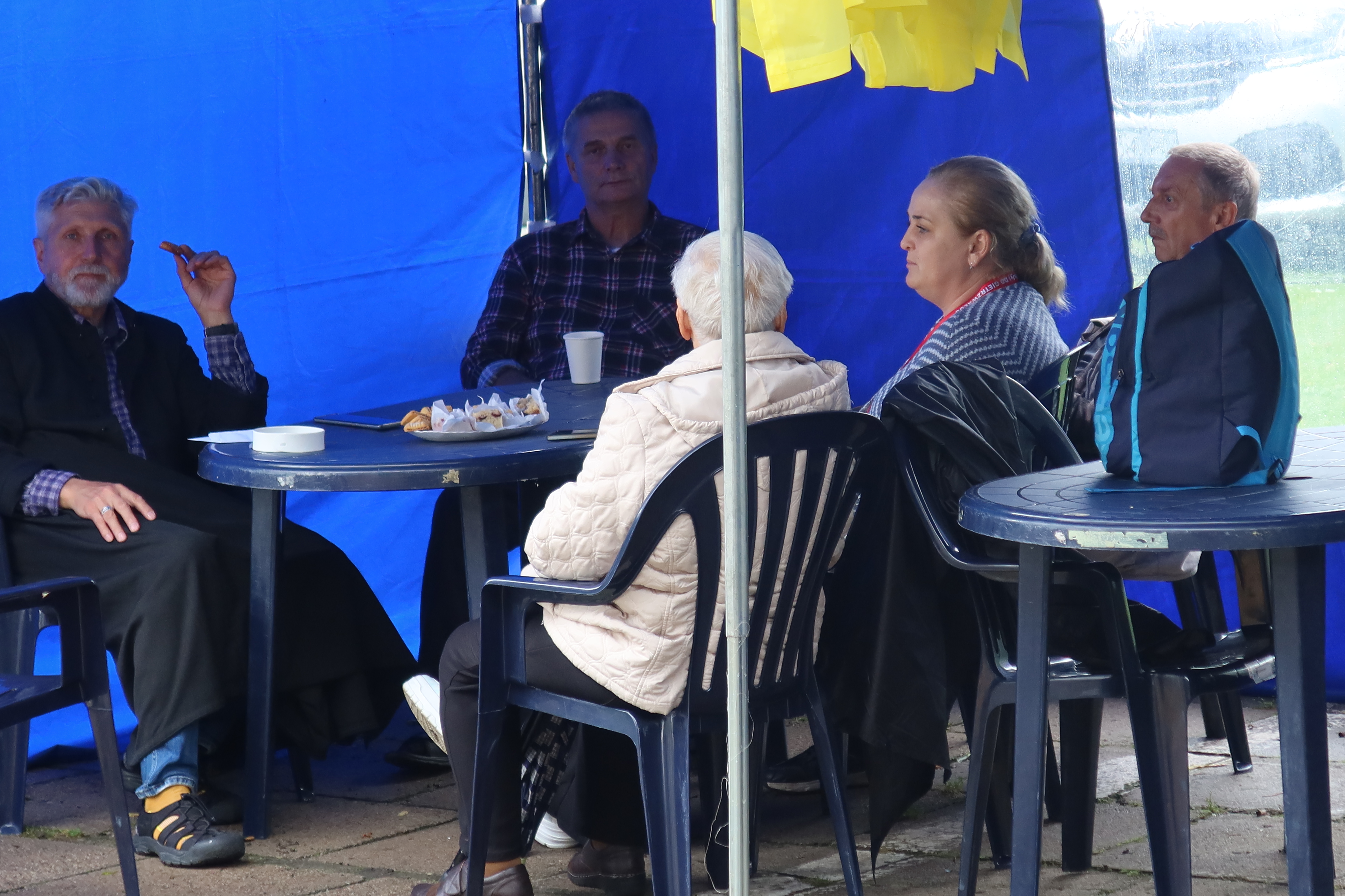 Goście, zostali serdecznie powitani przez uczestników i pracowników ŚDS oraz społeczność lokalną. Wspólna modlitwa oraz śpiew pieśni pielgrzymkowych radośnie wypełniły to spotkanie. My jako gospodarze przygotowaliśmy ciepły posiłek, gorącą kawę i herbatę oraz słodkie domowe wypieki, które stały się na chwilę wytchnieniem i okazją do rozmów. Mimo niesprzyjającej, deszczowej pogody panowała ciepła, pełna wdzięczności atmosfera. Spotkanie zakończyło się wspólną fotografią i błogosławieństwem oraz modlitwą w kościele.